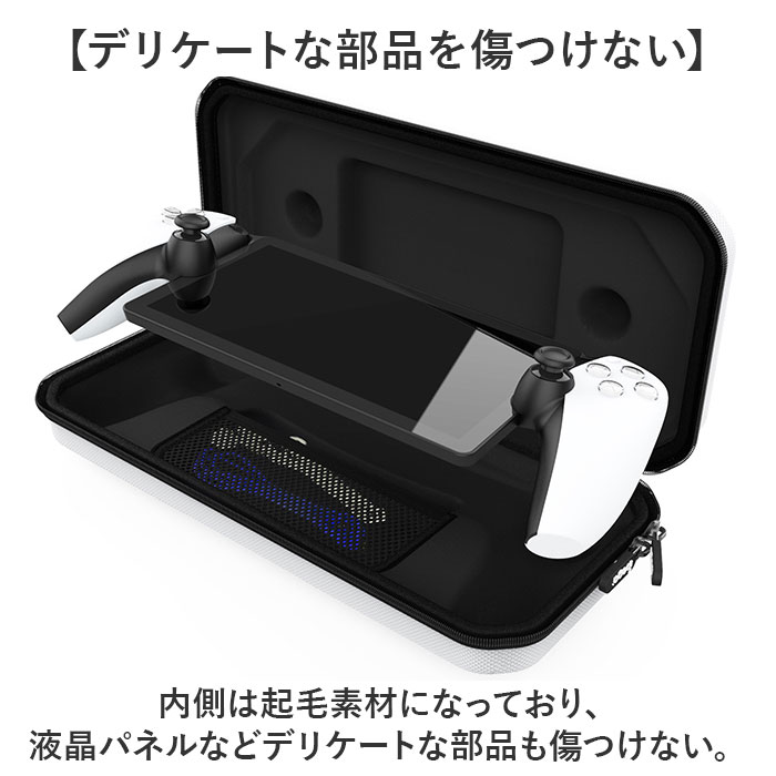 | 商品説明 | 【PSポータル専用】大切なゲーム機をしっかり守る♪PSポータル専用収納ケースが新発売。【大切なゲーム機を守る】衝撃や汚れからしっかり守るセミハードのケースで万が一落としても安心♪【デリケートな部品を傷つけない】内側は起毛素材になっており、液晶パネルなどデリケートな部品も傷つけない。【ズレにくい溝入り】各部品の凹凸に沿った溝入りの作りで、移動中もゲーム機の位置がズレにくい。【大きく開いて出し入れ簡単】ガバッと大きく開くので、大きめに作られているPSポータルの出し入れもスムーズに可能。【アダプターやケーブルもIN】メッシュポケットを配置し、アダプターやケーブルなどの小物もまとめて収納可能。【サッと持ち出せるハンドル付き】サッと持ち出したい時に便利なハンドルを上部に搭載。保管はもちろん、持ち運び用にも最適☆【ポケット仕様】メッシュポケット×1 |