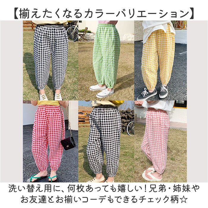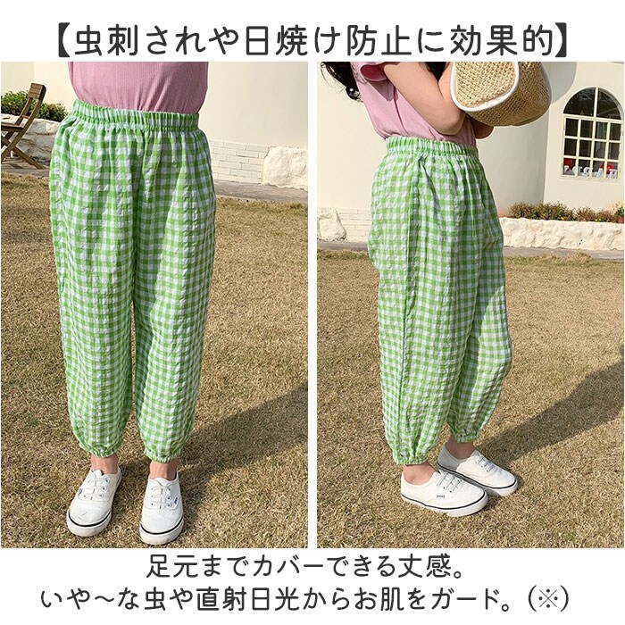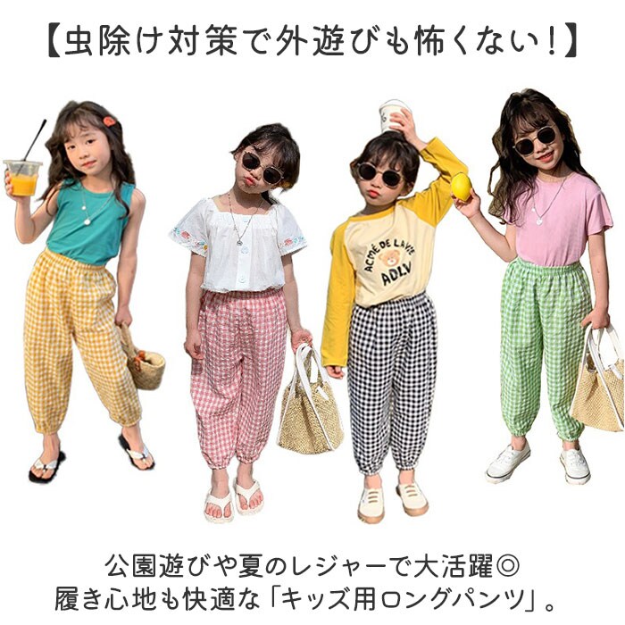 | 商品説明 | 【虫除け対策で外遊びも怖くない!】公園遊びや夏のレジャーで大活躍◎履き心地も快適な「キッズ用ロングパンツ」。【虫刺されや日焼け防止に効果的】足元までカバーできる丈感。いや~な虫や直射日光からお肌をガード。(※)UVカット仕様ではございません。【締め付けがなくストレスフリー】自分サイズにフィットする、ウエストゴム仕様。着脱もスムーズ。【元気に遊び回るお子さまに!】裾にはゴムが入っており、足の動きを妨げない!アクティブシーンで重宝。【サラッと軽やかな生地感も魅力】手触り柔らかな、薄手のコットン素材。通気性にも優れており、汗ばむ季節にぴったり。【お家でも旅行先でも使えて万能】お家ではルームウェアとして。持ち運びもしやすく、トラベルシーンにもおすすめ。【揃えたくなるカラーバリエーション】洗い替え用に、何枚あっても嬉しい!兄弟・姉妹やお友達とお揃いコーデもできるチェック柄☆ |