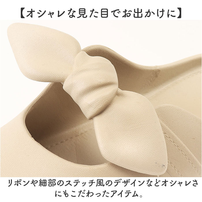 | 商品説明 | 【オシャレな見た目で楽ちん】リボンが可愛い♪パンプスのような見た目で履きやすいつっかけサンダルが新登場。【リボンが可愛いポイント】フロントの大きなリボンがワンポイント♪可愛い見た目でお出掛けが楽しくなる◎【もちっとしたインソール】ソール部分はもちっとしたクッション性で、足裏を優しく保護◎【素足で履いても痛くならない】靴全体にぐにゃっと曲がる柔らかい素材を使用し、素肌に当たっても痛くなりにくい。【オシャレな見た目でお出かけに】リボンや細部のステッチ風のデザインなどオシャレさにもこだわったアイテム。【サッと脱ぎ履きができる】つっかけタイプなのでストラップや靴ひもがなく、脱ぎ履きが楽ちんかつスムーズに完了。【お手入れも楽チン】水や汚れに強い素材で、汚れが気になったら手洗いが可能。お手入れも楽チン。【様々なシーンに対応】普段使いはもちろん、お庭やバルコニー用にもピッタリ。シャワーサンダルに使うのも☆ |