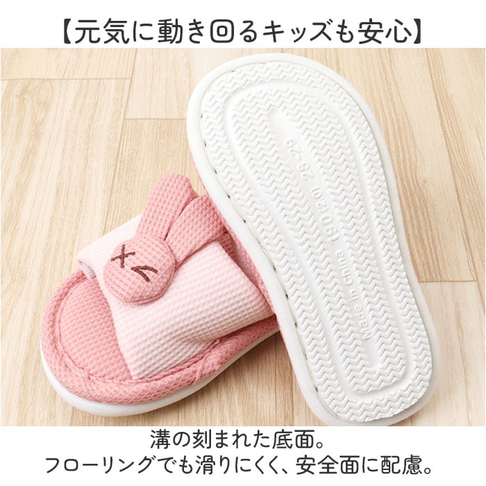 | 商品説明 | 【おうち時間を心地よくサポート】デザイン性も履きやすさも抜群。キッズの足に馴染む「ルームシューズ」。【優しくストレスフリーな履き心地】サラリと柔らかな肌触りのワッフル生地を使用。そっと受け止めて、素足でも快適。【通気性抜群で嫌なムレを軽減】つま先のあいたオープントゥデザイン。熱がこもりにくく、オールシーズン活躍。【元気に動き回るキッズも安心】溝の刻まれた底面。フローリングでも滑りにくく、安全面に配慮。【歩きやすく、足音も気になりにくい】足の動きに合わせて柔軟に曲がる屈曲性に優れたソール。静音効果でパタパタ音も気にならない!【兄弟や姉妹お揃いで楽しめる☆】立体感を出した、可愛らしいデザイン♪成長に合わせて選べるサイズ展開。 |