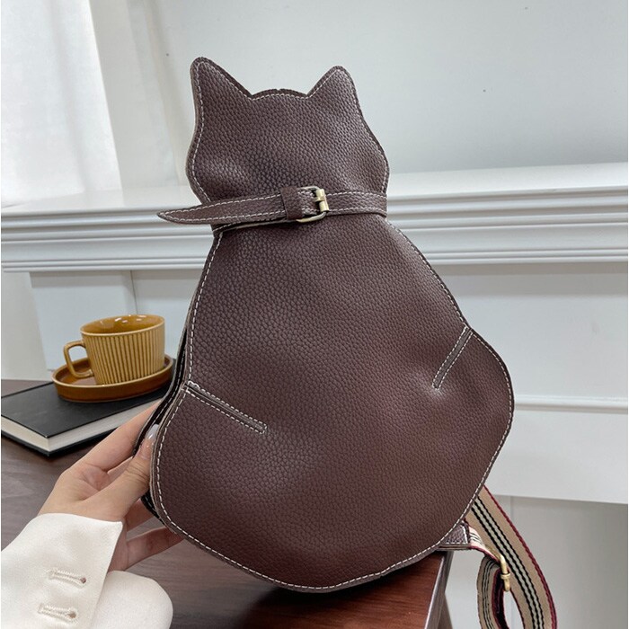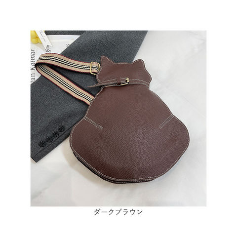ショルダー ねこ ボディバッグ 斜めがけバッグ 【ダークブラウン】