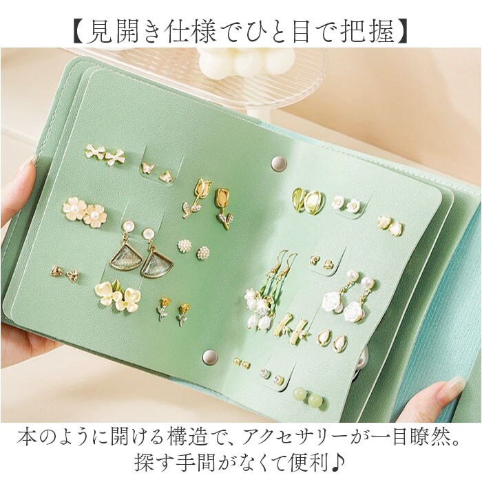 ピアス アクセサリー ケ 収納ケース 持ち運び【グリーン】
