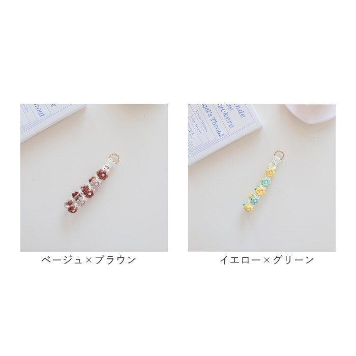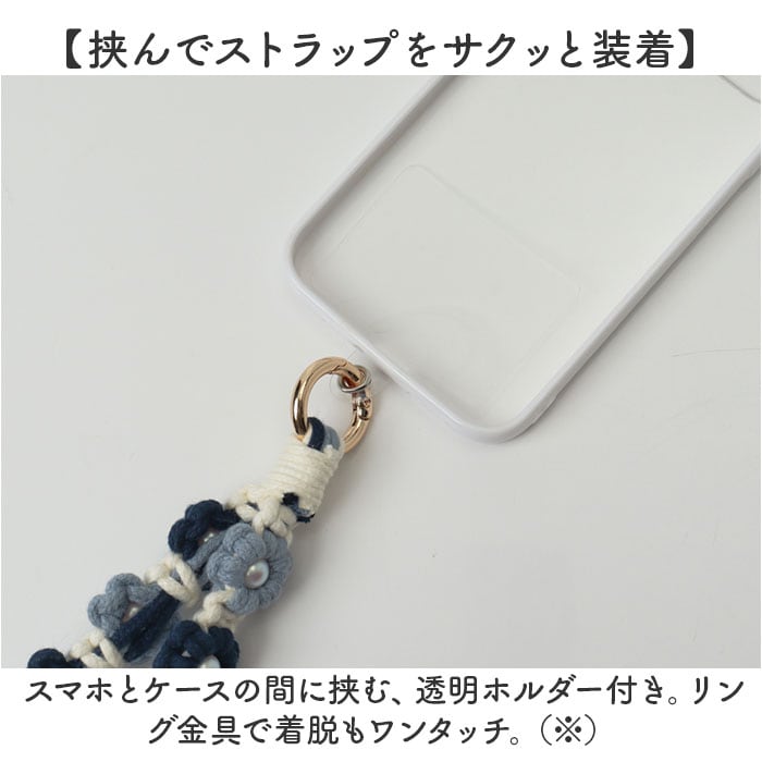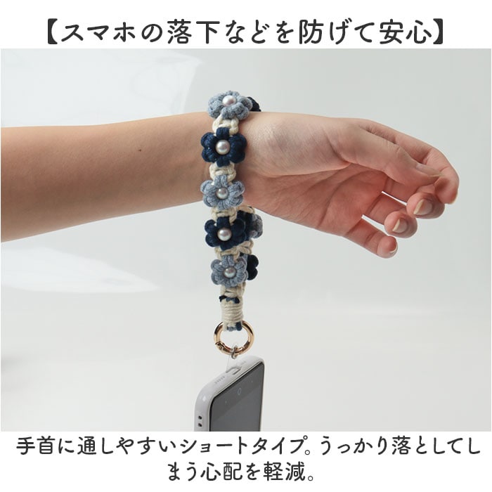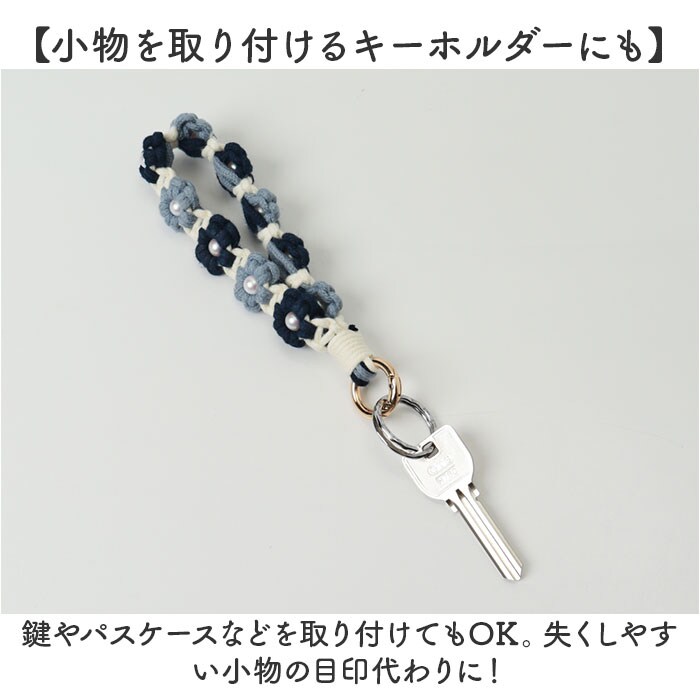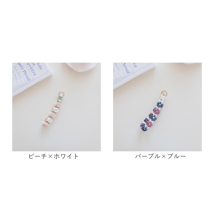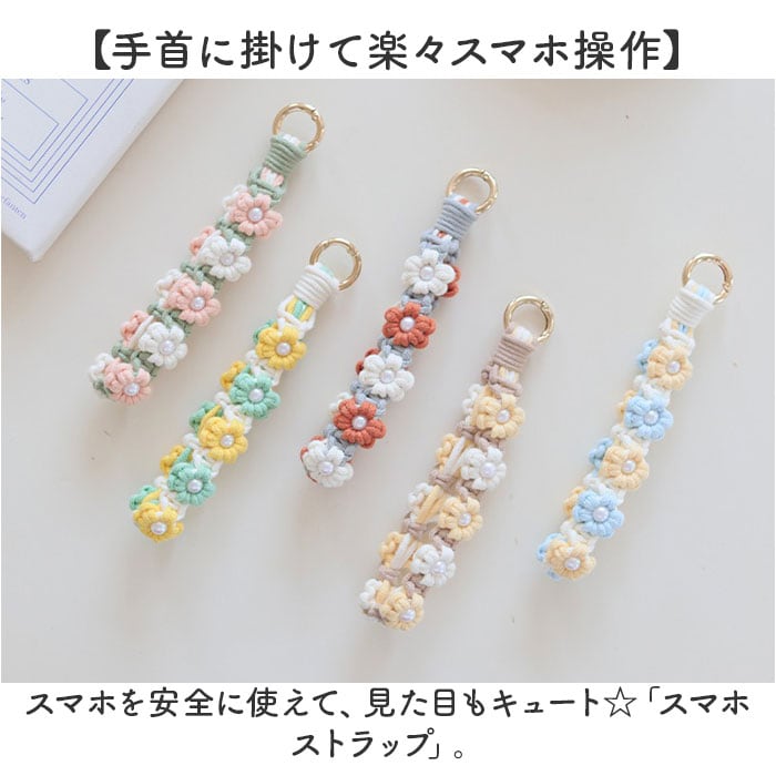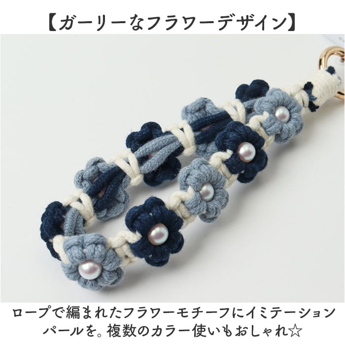 | 商品説明 | 【手首に掛けて楽々スマホ操作】スマホを安全に使えて、見た目もキュート☆「スマホストラップ」。【ガーリーなフラワーデザイン】ロープで編まれたフラワーモチーフにイミテーションパールを。複数のカラー使いもおしゃれ☆【挟んでストラップをサクッと装着】スマホとケースの間に挟む、透明ホルダー付き。リング金具で着脱もワンタッチ。(※)ケースの形状や素材によっては使用できない場合もあります。【スマホの機種を問わず使える】お手持ちのスマホケースに取り付けるタイプなので、スマホを買い替えても使用可能。【スマホの落下などを防げて安心】手首に通しやすいショートタイプ。うっかり落としてしまう心配を軽減。【小物を取り付けるキーホルダーにも】鍵やパスケースなどを取り付けてもOK。失くしやすい小物の目印代わりに! |
