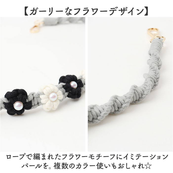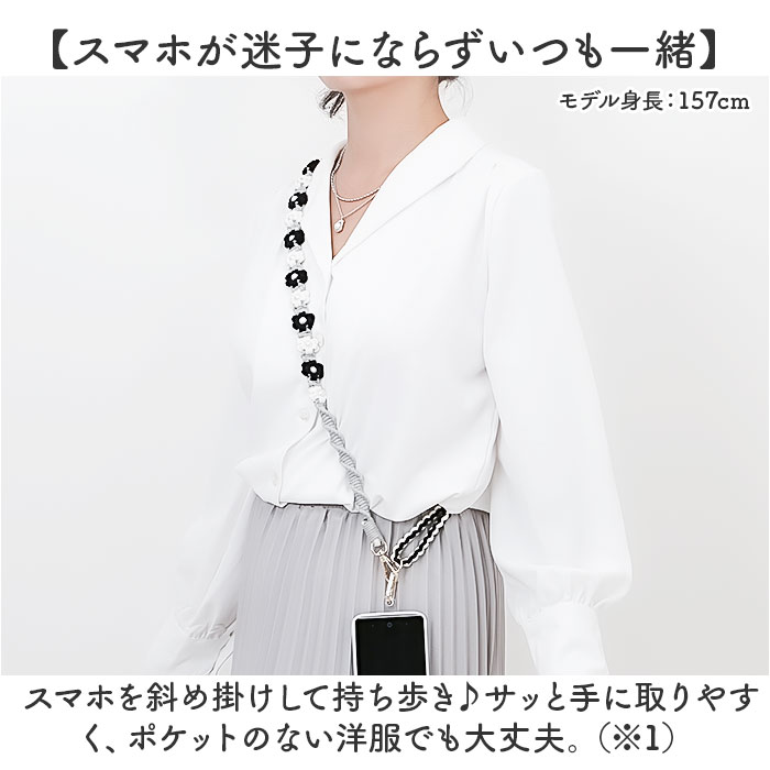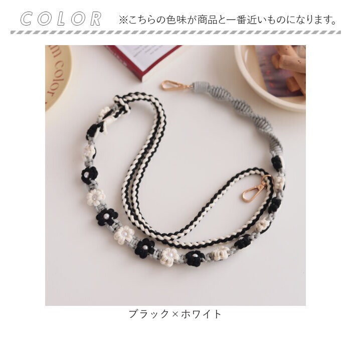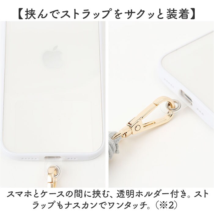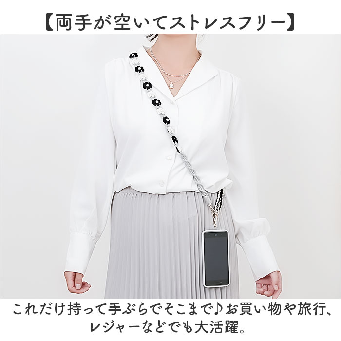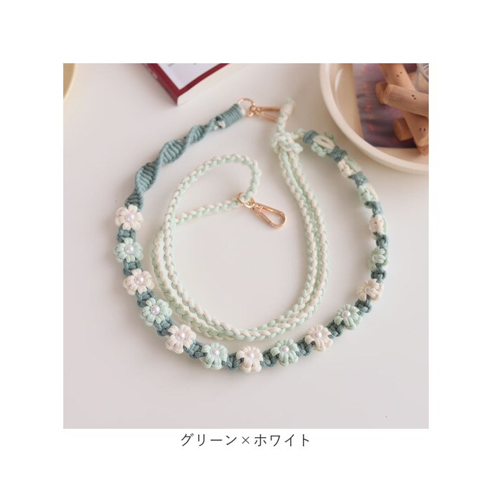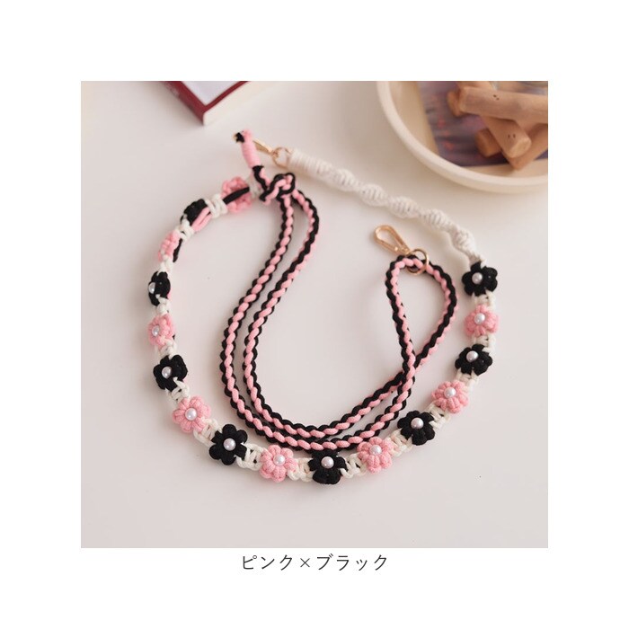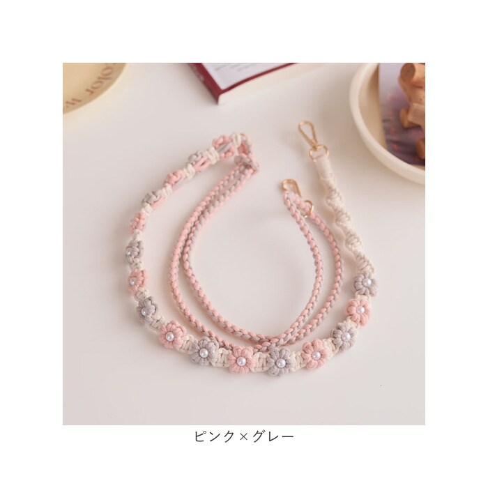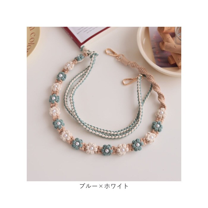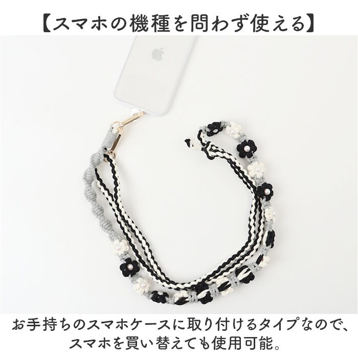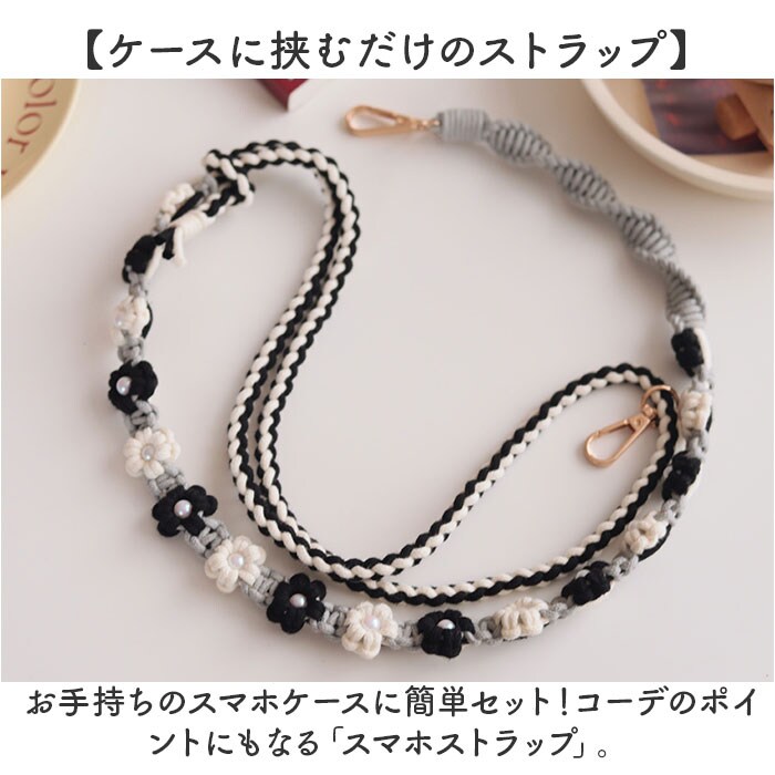 | 商品説明 | 【ケースに挟むだけのストラップ】お手持ちのスマホケースに簡単セット!コーデのポイントにもなる「スマホストラップ」。【スマホが迷子にならずいつも一緒】スマホを斜め掛けして持ち歩き♪サッと手に取りやすく、ポケットのない洋服でも大丈夫。(※1)結び目で長さ調節可能です。【ガーリーなフラワーデザイン】ロープで編まれたフラワーモチーフにイミテーションパールを。複数のカラー使いもおしゃれ☆【挟んでストラップをサクッと装着】スマホとケースの間に挟む、透明ホルダー付き。ストラップもナスカンでワンタッチ。(※2)ケースの形状や素材によっては使用できない場合もあります。【スマホの機種を問わず使える】お手持ちのスマホケースに取り付けるタイプなので、スマホを買い替えても使用可能。【両手が空いてストレスフリー】これだけ持って手ぶらでそこまで♪お買い物や旅行、レジャーなどでも大活躍。 |