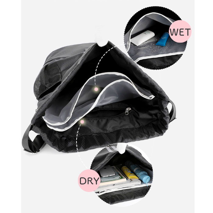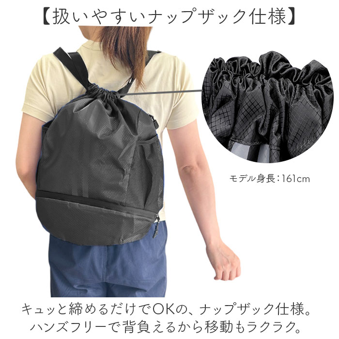 | 商品説明 | 【濡れた服も収納できる!】ジムバッグ、レジャー、習い事やプールに!「撥水ナップサック」が登場。【濡れた衣類やタオルも収納OK!】水濡れや汗で濡れた衣類の収納もOKな内側撥水生地!突然の雨でも安心の外側も撥水加工をON。(※)撥水機能は完全に防水するものではありません。【底部の独立収納がポイント】靴などの分けて入れたい荷物を入れられる収納を搭載。ジムや習い事バッグにぴったり!【仕切りポケットで整理整頓】メイン収納には、撥水生地を使った仕切りポケットを搭載。荷物を整理しやすい作り。【扱いやすいナップザック仕様】キュッと締めるだけでOKの、ナップザック仕様。ハンズフリーで背負えるから移動もラクラク。【男女兼用、お子様も大人も使える!】スポーティーデザインなので、性別年齢関係なく使える!お子様の部活や林間学校などにも♪【ポケット仕様】底部:ファスナーポケット×1メイン収納:仕切りポケット×1、ファスナーポケット×1サイド:オープンポケット×2 |