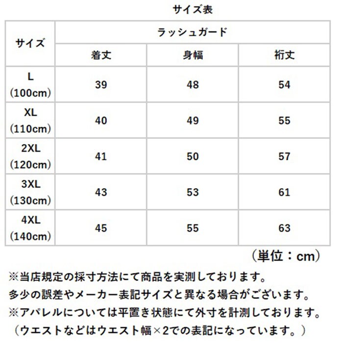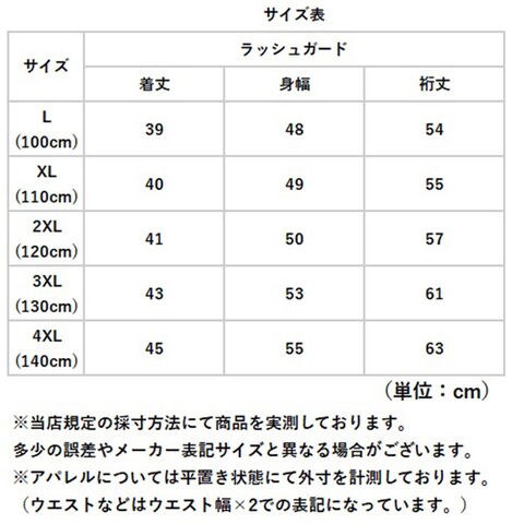 | サイズ | [キッズ] ・L(100cm) ・XL(110cm) ・2XL(120cm) ・3XL(130cm) ・4XL(140cm) ※サイズについて詳細は、商品画像の中にあるサイズ表をご覧くださいませ。 |