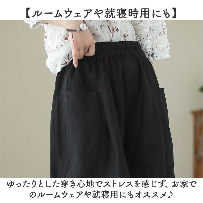 パンツ ショートパンツ 麻 レディース 薄手【ブラック】【フリーサイズ(M)】