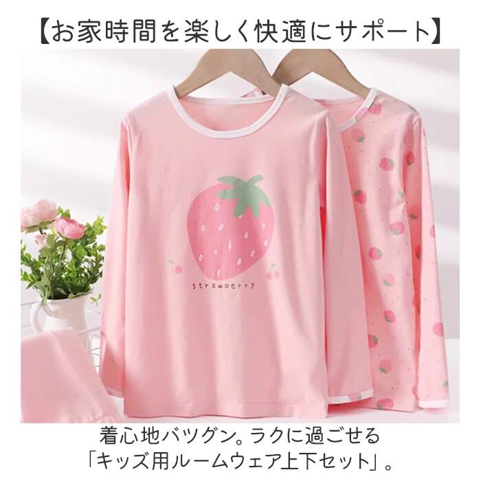 キッズ パジャマ ルームウェア 部屋着 上下セット【ストロベリー×A】【110cm】