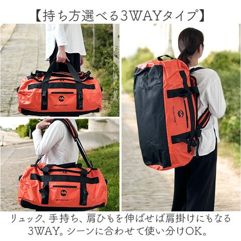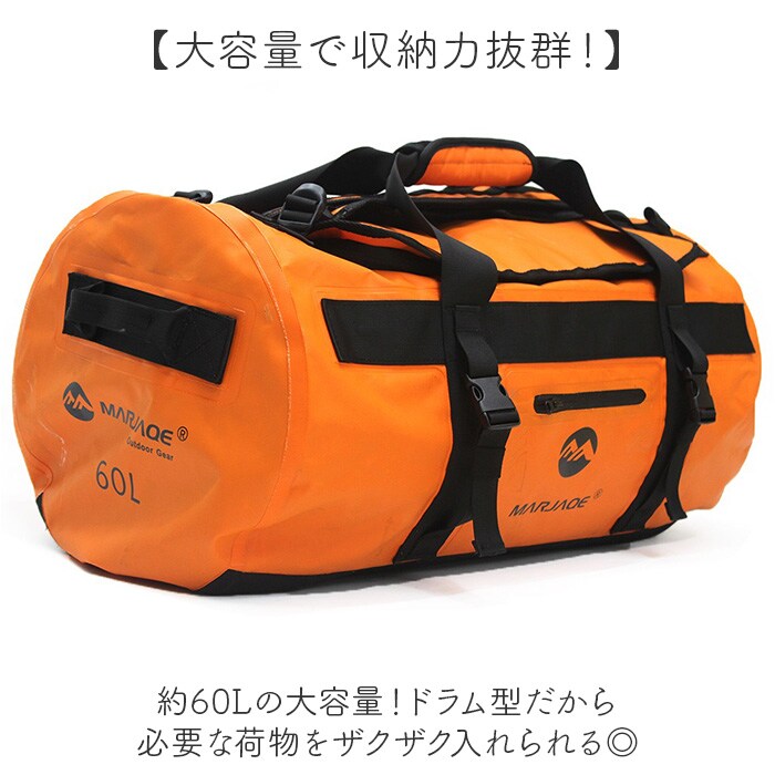 | 商品説明 | 【いろいろなシーンで大活躍!】機能性バッチリ、多機能タイプの「3WAY バックパック」が登場。【大きく開くダブルファスナー仕様】メインの開口部はガバッと開いて中身が見やすい!荷物の出し入れもスムーズ。【大容量で収納力抜群!】約60Lの大容量!ドラム型だから必要な荷物をザクザク入れられる◎【便利なファスナーポケットを配置】内側・外側にファスナーポケットを配置。小物の収納や取り出しもラク。【持ち方選べる3WAYタイプ】リュック、手持ち、肩ひもを伸ばせば肩掛けにもなる3WAY。シーンに合わせて使い分けOK。【両サイドにも持ち手付き】重たい荷物も二人で運べて安心!サイドにも持ち手を装備。【荷物に合わせて調節可能】サイドベルトで幅を調節。ショルダーベルトは体に合わせて長さ調節が可能。【背負い心地も快適】ショルダーベルトの裏側にはクッション性のあるメッシュ素材を採用。通気性も◎【水辺のレジャーも安心】表面は撥水加工済み。汚れや水滴を弾きやすく、お手入れもカンタン。【ユニセックスで使えるデザイン】アウトドアでも目立つカラー展開。3泊程度の旅行や合宿の荷物もたっぷり入るビッグサイズ!【ポケット仕様】内側:メッシュファスナーポケット×1外側:ファスナーポケット×1 |
