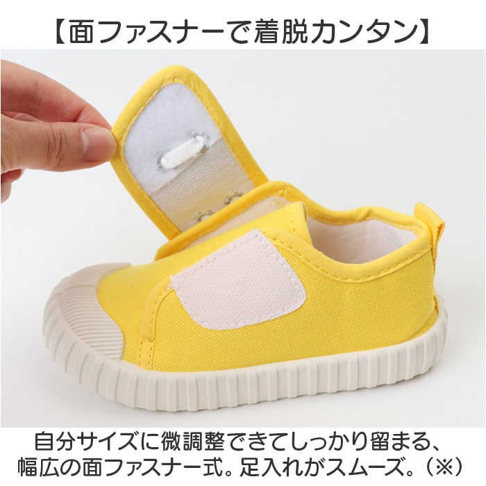 | 商品説明 | 【お出かけの相棒にぴったり】サッと履けてデイリー使いにぴったり。ベビー&キッズシューズ☆【面ファスナーで着脱カンタン】自分サイズに微調整できてしっかり留まる、幅広の面ファスナー式。足入れがスムーズ。(※)面ファスナー部分の紐はフェイクです。【履きやすく歩きやすいフォルム】つま先が広めに設計されており、締め付けを感じにくい!地面を捉えやすいのもポイント。【程よいクッション性のインソール】柔らかインソールが足裏にかかる衝撃をガードし、疲れを軽減。取り外しもOK。【屈曲性があり、歩きやすさが向上】つま先部分は、足の動きに合わせて柔軟に曲がる形状。蹴り上げやすくつまずきにくい!【滑りにくく安定感のあるソール】程よいグリップ力があるソール。フラットな厚みで衝撃から守り、安定した歩行をサポート。【兄弟・姉妹で可愛くお揃いに】男の子も女の子も履きやすいカラーをラインナップ。お子さまのファーストシューズにも☆ |