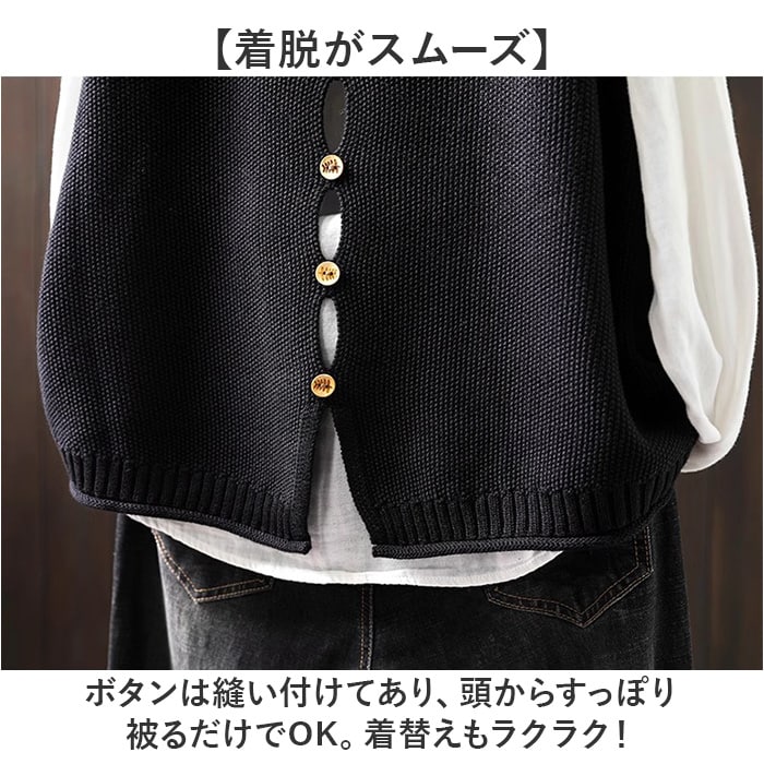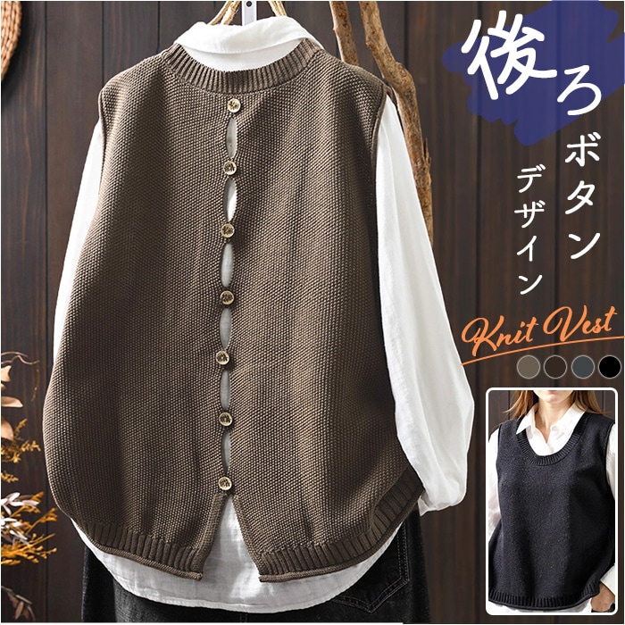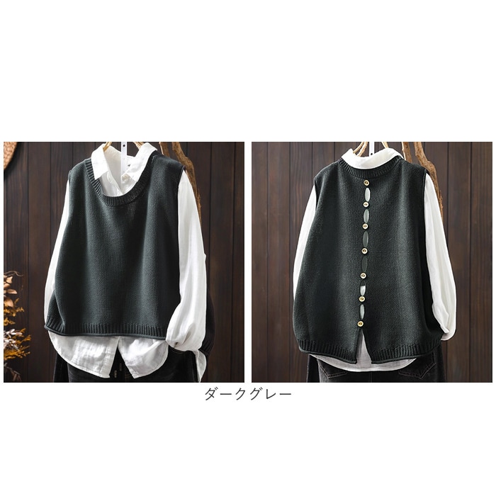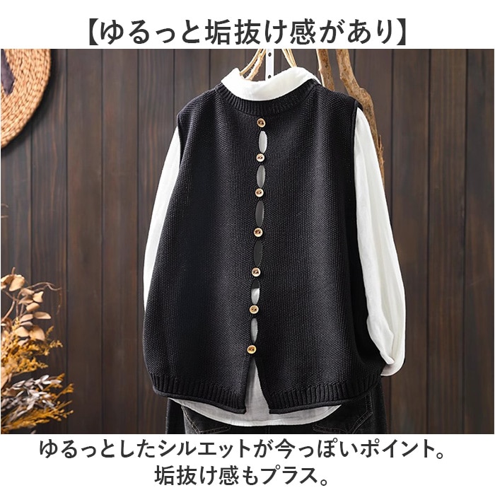 | 商品名 | ニットベスト バックボタン レディース オールシーズン ゆったり |