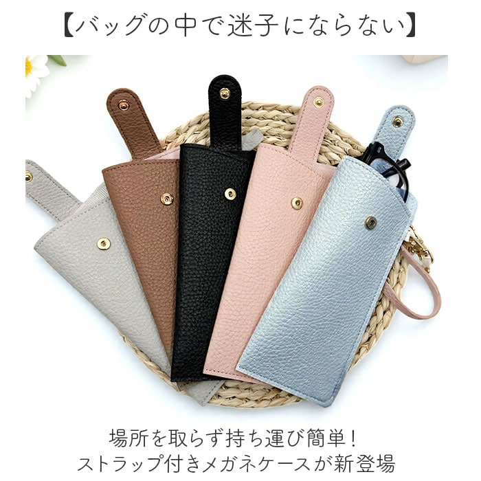 商品説明【バッグの中で迷子にならない】場所を取らず持ち運び簡単!ストラップ付きメガネケースが新登場【フック付きストラップで即座に取り出し】バッグの外側に吊るせる便利なストラップ付属で、必要な時にすぐ取り出せる【驚くほどのスリム設計でかさばらない】厚さ約1cm・わずか44gの超軽量設計で、鞄のちょっとした隙間にも収まる便利さ【メガネの出し入れをスムーズにする口元】開口部が斜めにカットされたデザインで、眼鏡をスムーズに出し入れできる使いやすさ【おしゃれで上品な質感のフェイクレザー】本革のような風合いのPUレザー素材を使用し、シンプルながらも高見えするデザイン性【パチッと留まるボタン式で安心収納】開閉はボタン仕様で中身が飛び出しにくく、持ち運びの際も安心の操作感