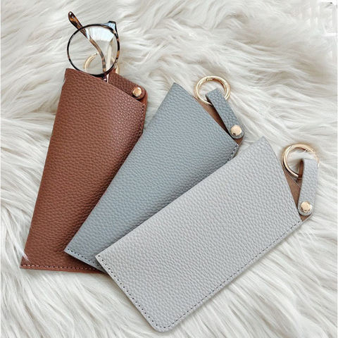メガネケース ソフト 軽量 薄型 ストラップ付き【ブラウン】