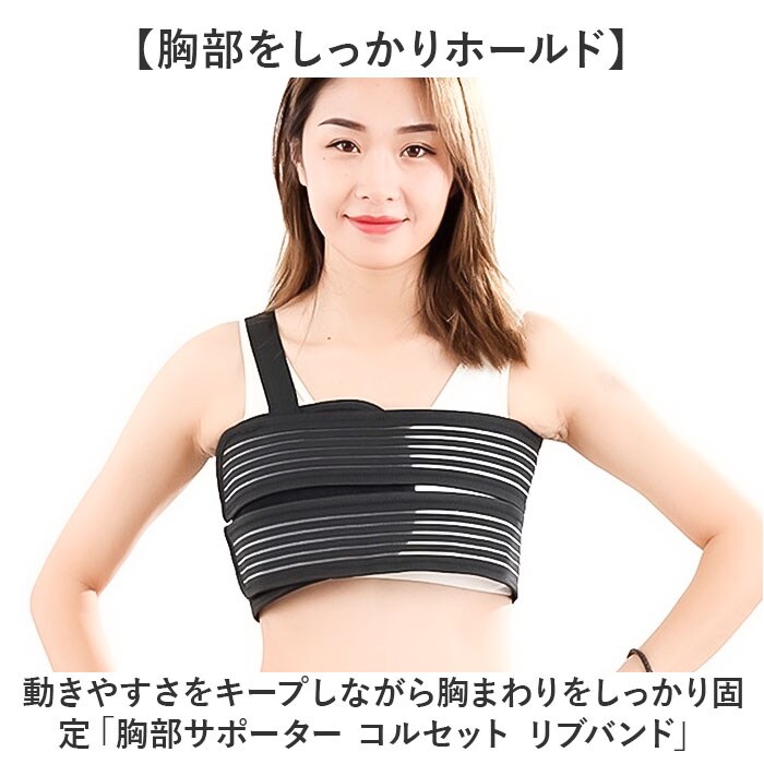 胸部サポーター コルセット リブバンド【ブラック】【M】