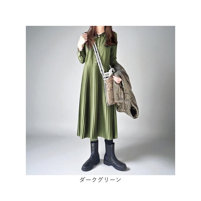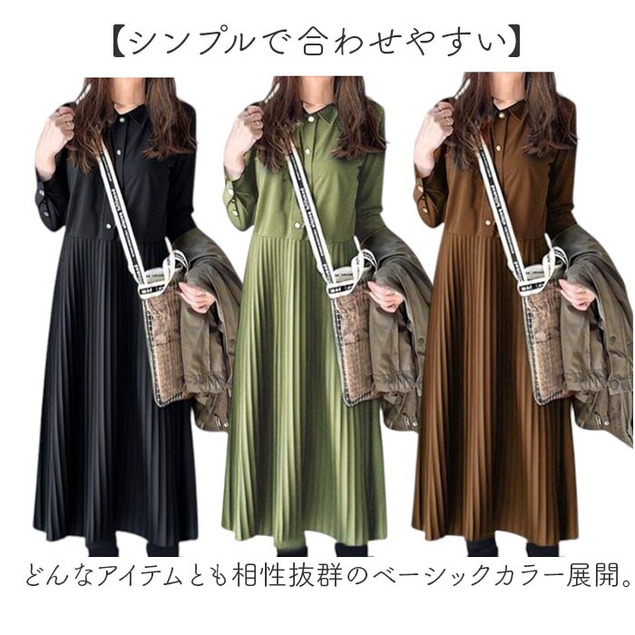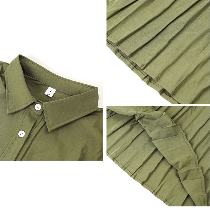 | 商品名 | シャツワンピース 長袖 ロング プリーツ 体型カバー |