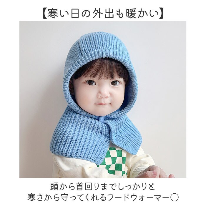 | 商品説明 | 【寒い日の外出も暖かい】頭から首回りまでしっかりと寒さから守ってくれるフードウォーマー〇【前ボタンで着脱らくらく】ボタンを外すだけで簡単に脱ぎ着できる♪【やわらかなニット素材】肌触りが良く伸縮性もあり心地よくフィット◎ |