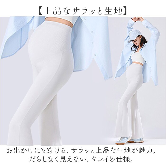 マタニティ パンツ レディース フレアパンツ フレアレギンス【ホワイト】【L】