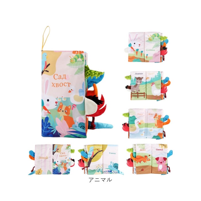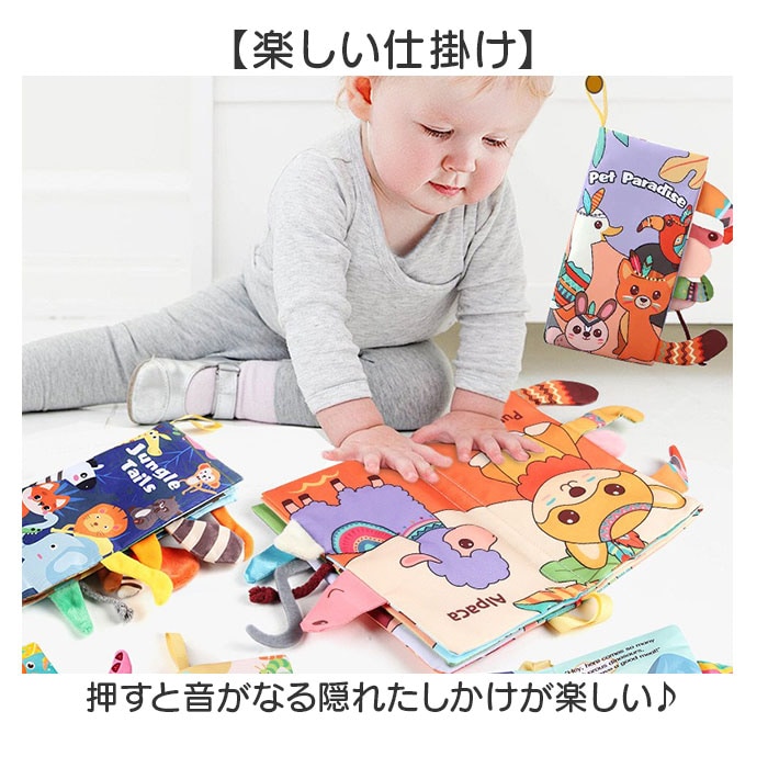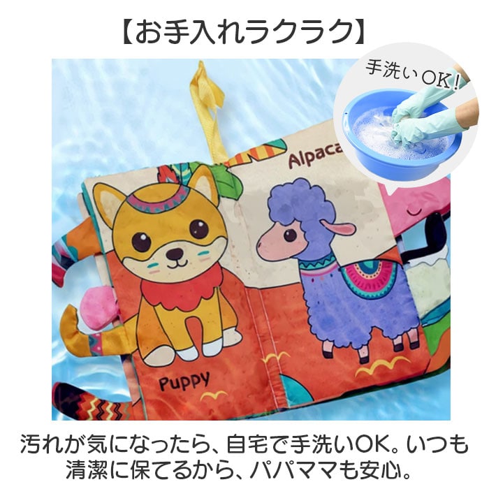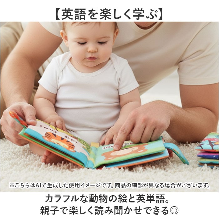 | 商品説明 | 【たっぷりの仕掛けが楽しい布絵本】発達を促す仕掛けがたくさん!楽しい知育玩具♪【視覚・触覚・聴覚を刺激】カラフルな色彩は視覚を、シャカシャカ音としっぽの感触は手指の感覚を育む♪【楽しい仕掛け】押すと音がなる隠れたしかけが楽しい♪【英語を楽しく学ぶ】カラフルな動物の絵と英単語。親子で楽しく読み聞かせできる◎【お手入れラクラク】汚れが気になったら、自宅で手洗いOK。いつも清潔に保てるから、パパママも安心。【ベビーに優しい仕様】お子さまが遊びやすい軽量&コンパクトなつくり。危ない装飾がなく、誤飲やケガの心配も不要。【持ち運びに便利】フック付きで持ち運びも楽々便利!いつでもどこでも遊べてベビーもご機嫌♪ |