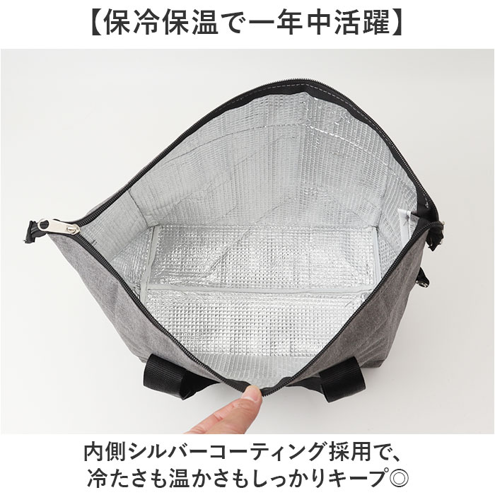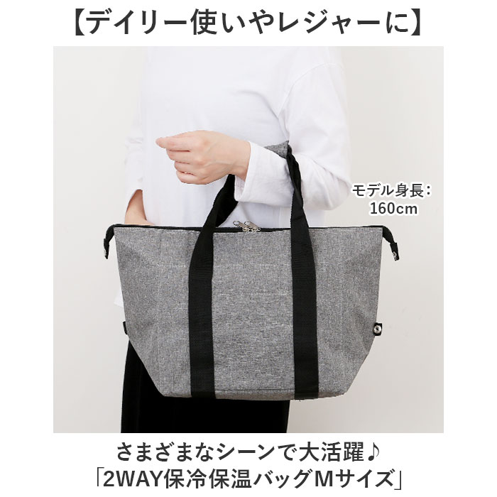 | 商品説明 | 【デイリー使いやレジャーに】さまざまなシーンで大活躍♪「2WAY保冷保温バッグMサイズ」【スタイル自在】ボタン一つでトート型からスクエア型に変身する2WAY仕様!【開閉ラクラク】大きく開くダブルファスナーで中身の出し入れがスムーズ。【保冷保温で一年中活躍】内側シルバーコーティング採用で、冷たさも温かさもしっかりキープ◎【サッとひと拭きで簡単キレイ】内側は撥水性があり、汚れや水滴が拭き取りやすくお手入れ簡単。【小物収納に便利】バッグの正面にはオープンポケット付き。【たっぷり収納】マチがしっかりあるから食材やお弁当、ドリンクもたくさん入る嬉しい収納力。 |