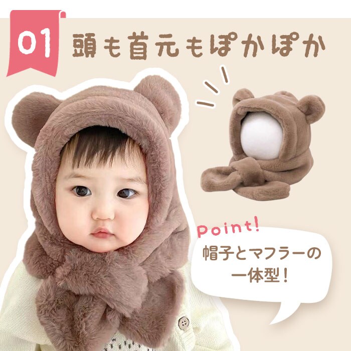 | 商品名 | キッズ ベビー 帽子 マフラー 一体 くま |