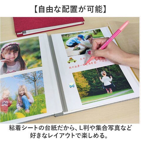 | 商品説明 | 【大切な思いの出記録に】写真整理が楽しくなる一冊♪貼るタイプのアルバム。【40ページの収納力】両面仕様の20シートの大容量タイプ。L判サイズの写真なら1ページ2枚。合計80枚収納可能。【劣化を防ぐ保護機能】フィルムで空気を遮断し、写真の酸化や色褪せを長期間しっかりガード!【自由な配置が可能】粘着ラミネート式で、L判や集合写真など好きなレイアウトで楽しめる。【整理整頓の味方】溜まりがちな写真をスッキリまとめて、記念日の記録を美しく保存。 |