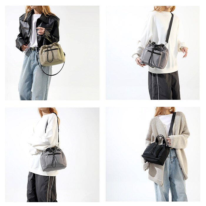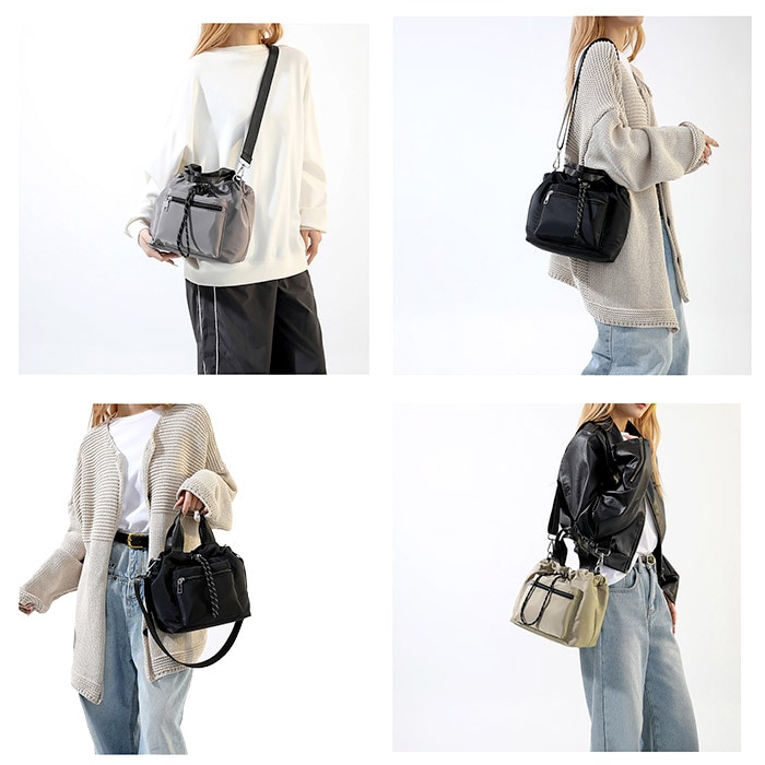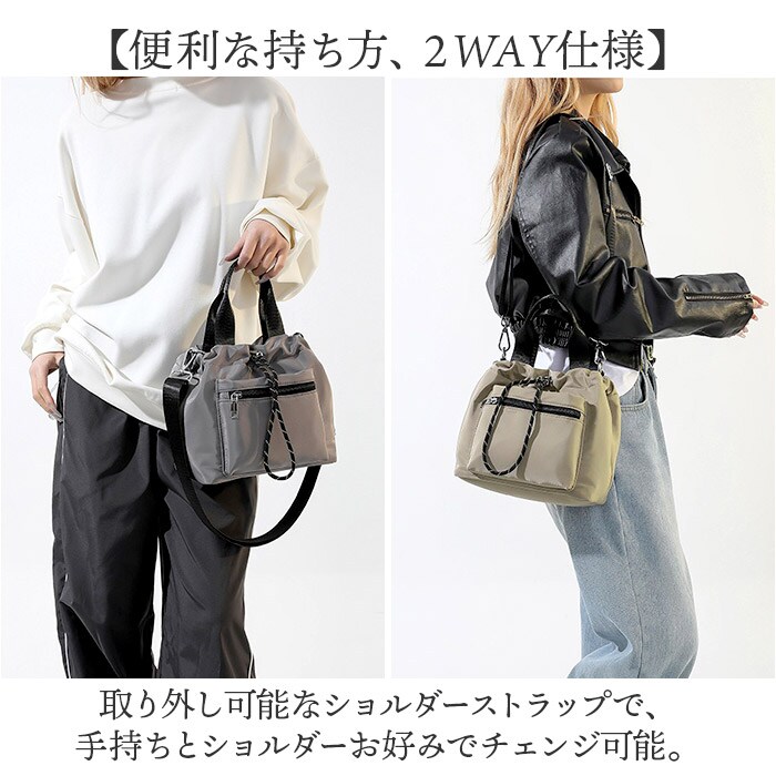| 商品名 | 巾着バッグ ショルダー フロントファスナーポケット 2way |