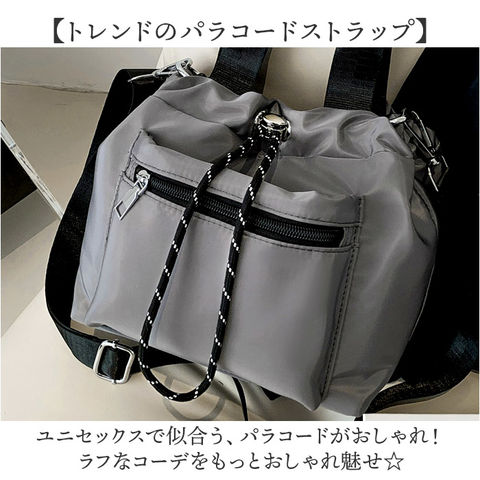 | 商品説明 | 【デイリーもレジャーもおまかせ☆】コンパクトなのにポケットを5つ搭載!「巾着ショルダーバッグ」が登場。【ころん&くしゅっとフォルム♪】シンプルだけど垢ぬける、こだわりのフォルム。カジュアルなのに可愛らしさのあるデザイン!【見ためよりもたっぷり入る!】しっかりマチがある作りなので、長財布、ペットボトル、ポーチなど必要な荷物が入る収納力。【5つのポケットで整理整頓】外側、内側にポケットを多数搭載。ごちゃつきがちな小物をすっきり整頓できる!【トレンドのパラコードストラップ】ユニセックスで似合う、パラコードがおしゃれ!ラフなコーデをもっとおしゃれ魅せ☆【撥水して軽い、ナイロン生地】突然の雨や汚れにも強い、撥水生地を採用。軽いから持ち歩きもストレスフリー。※完全防水ではありません。【便利な持ち方、2WAY仕様】取り外し可能なショルダーストラップで、手持ちとショルダーお好みでチェンジ可能。 |