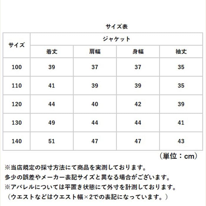 | サイズ | [キッズ] ・100cm ・110cm ・120cm ・130cm ・140cm ※サイズについて詳細は、商品画像の中にあるサイズ表をご覧くださいませ。 |