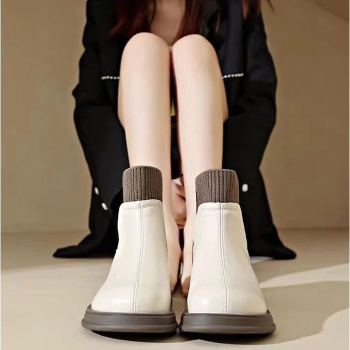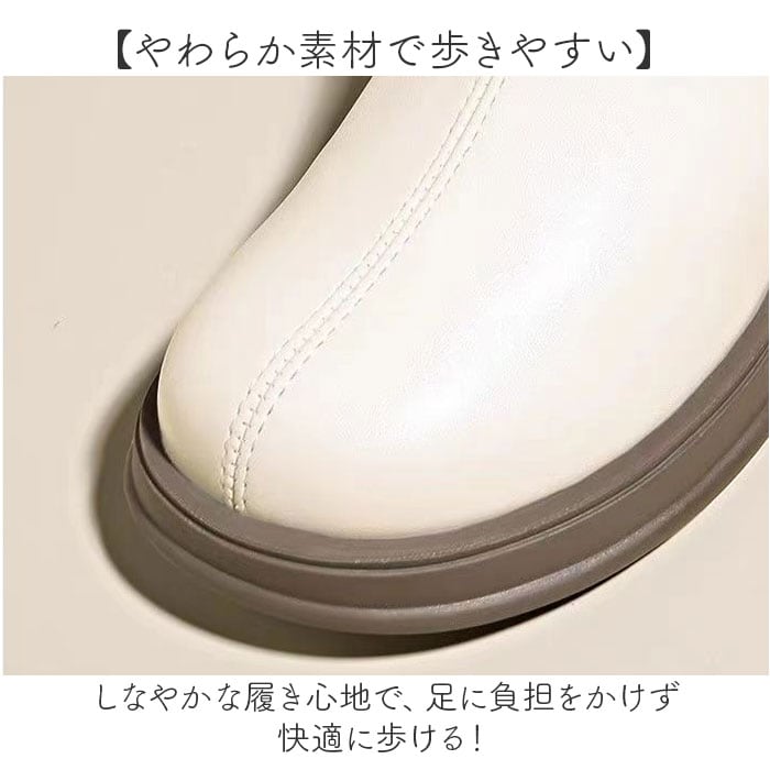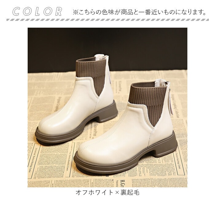 ブーツ 靴 厚底ショートブーツ 快適 おしゃれ【オフホワイト×裏起毛】【38(24.5cm)】