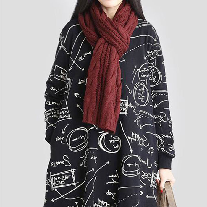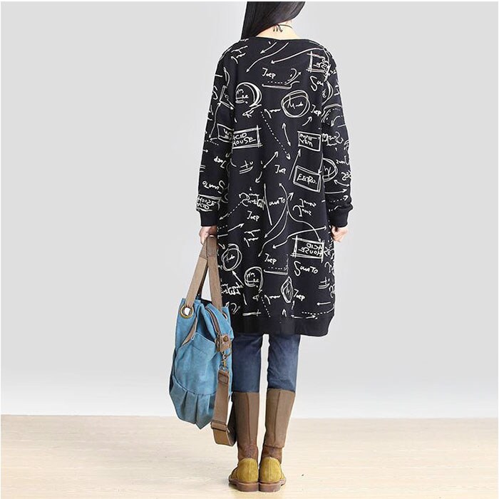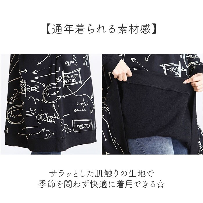 チュニック ワンピース 体型カバー 長袖 おしゃれ【ブラック】【XL】