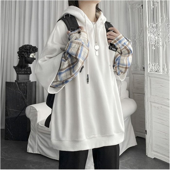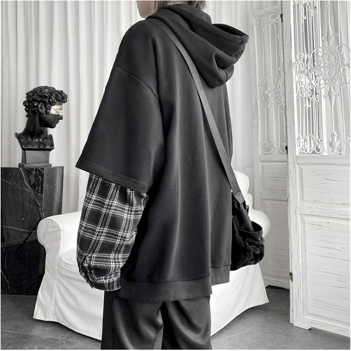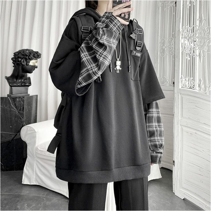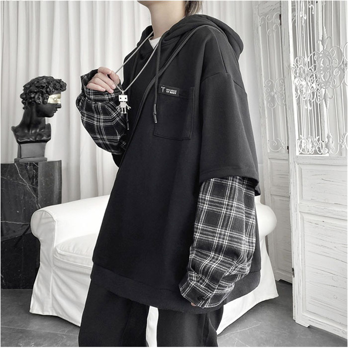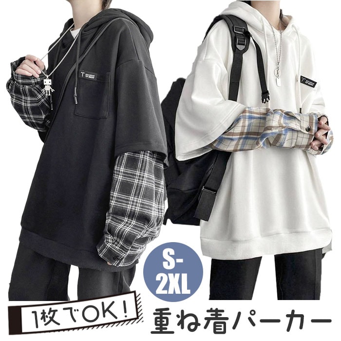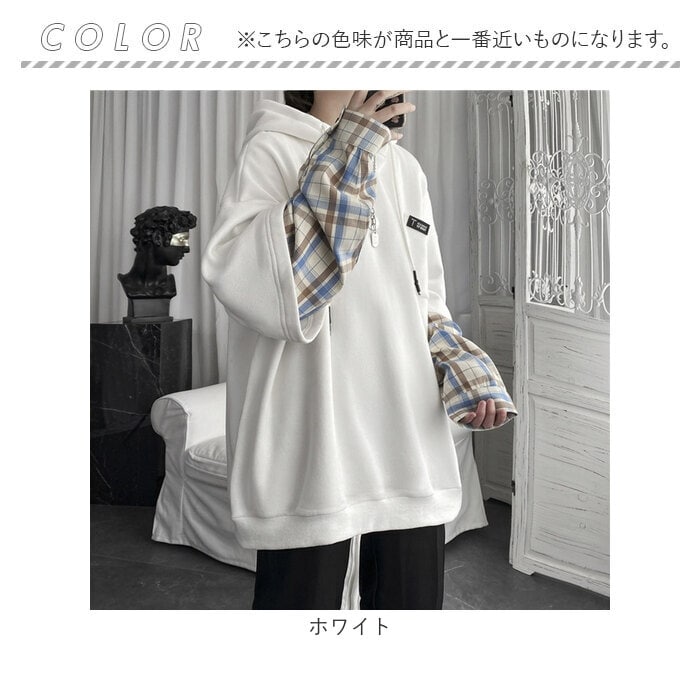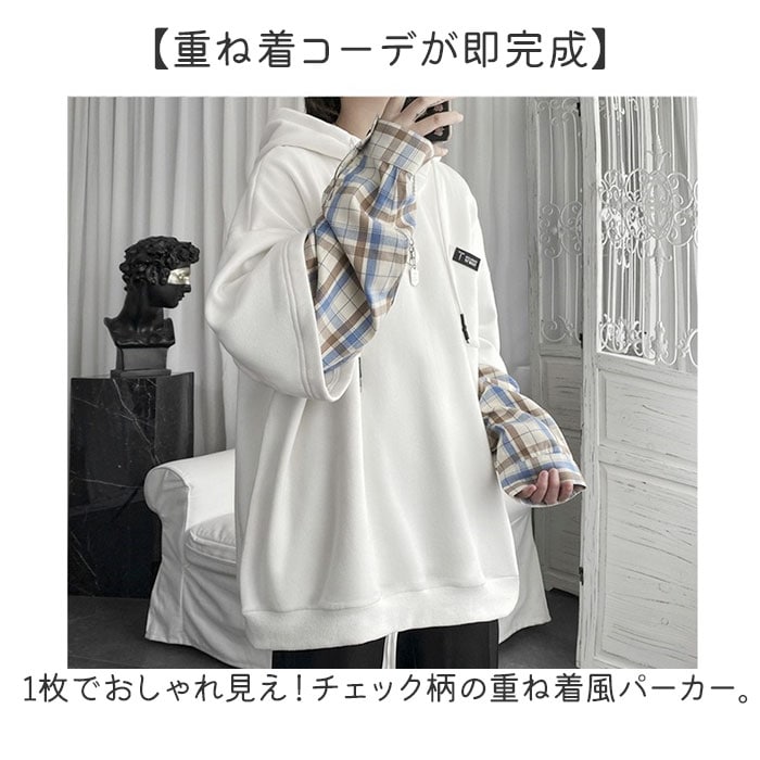 | 商品名 | パーカー 重ね着 チェック柄 フード付き 男女兼用 |