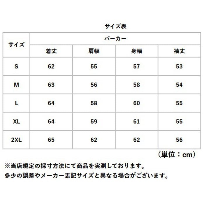 | サイズ | ・Sサイズ ・Mサイズ ・Lサイズ ・XLサイズ ・2XLサイズ ※サイズについて詳細は、商品画像の中にあるサイズ表をご覧くださいませ。 |
