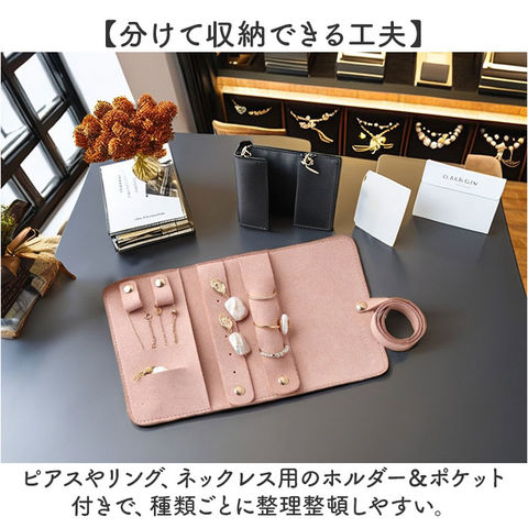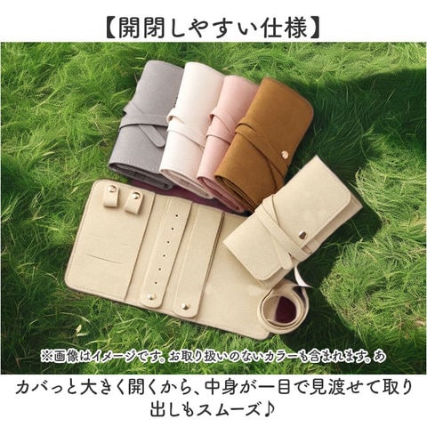 商品説明【大切なアクセサリーの持ち歩きに】旅行にも日常使いにも便利な「ジュエリーポーチ 携帯用 M」が新登場。【持ち運びしやすい】ミニバッグにもすっと入るコンパクトなサイズ感◎【ジュエリーを優しく保護】フランネル素材が優しくアクセサリーを包み込み、傷や絡まりから守ってくれる。【開閉しやすい仕様】カバっと大きく開くから、中身が一目で見渡せて取り出しもスムーズ♪【分けて収納できる工夫】ピアスやリング、ネックレス用のホルダー&ポケット付きで、種類ごとに整理整頓しやすい。