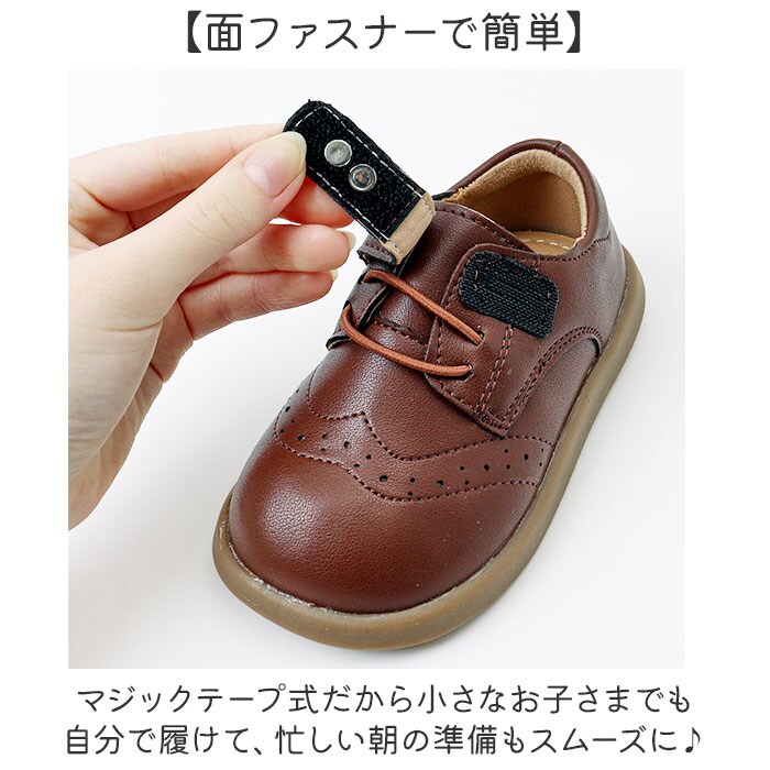 | 商品説明 | 【履きやすさが自慢】子どもも自分で着脱できる、キッズフォーマル&カジュアルシューズ。【面ファスナーで簡単】マジックテープ式だから小さなお子さまでも自分で履けて、忙しい朝の準備もスムーズに♪【滑りにくい靴底】足裏には滑り止め加工を施し、元気いっぱいに動き回っても転びにくい◎【フォーマルも普段使いも】シンプルな合成皮革のデザインで、発表会や式典からデイリーまで幅広く活躍する万能シューズ!【軽量で動きやすい】負担を感じさせない軽い履き心地で、歩き始めのお子さまの足をしっかりサポート。 |