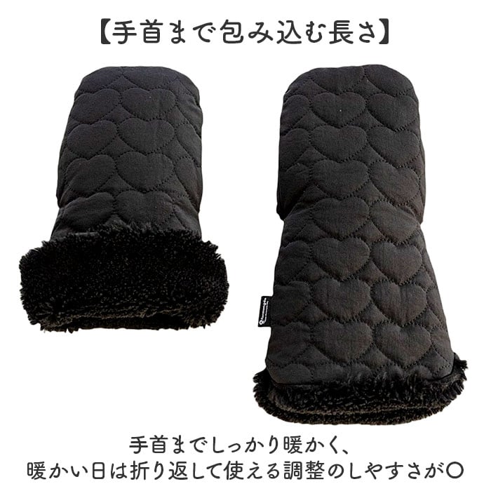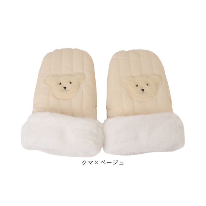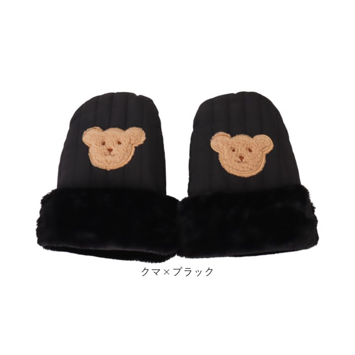 ベビーカー 手袋 ミトン 中綿入り 撥水【クマ×ブラック】