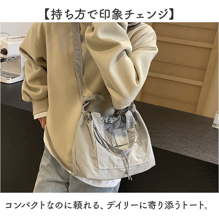 | 商品説明 | 【持ち方で印象チェンジ】コンパクトなのに頼れる、デイリーに寄り添うトート。【2WAYで使い分け自在】肩掛けとハンドの切り替えでシーンに合わせた持ち方が叶う♪【軽やかな持ち心地】長時間の外出でも疲れを感じさせない使用感が魅力◎【絶妙な愛らしいフォルム】絞りで生まれるコロンとしたラインが抜け感を演出してくれる。【荷物の整理がスムーズ】たっぷりマチで中身が一目瞭然!探し物の手間いらず〇【洗練カラーで上品に】ベーシックな色合いが大人女子のコーデを格上げ! |