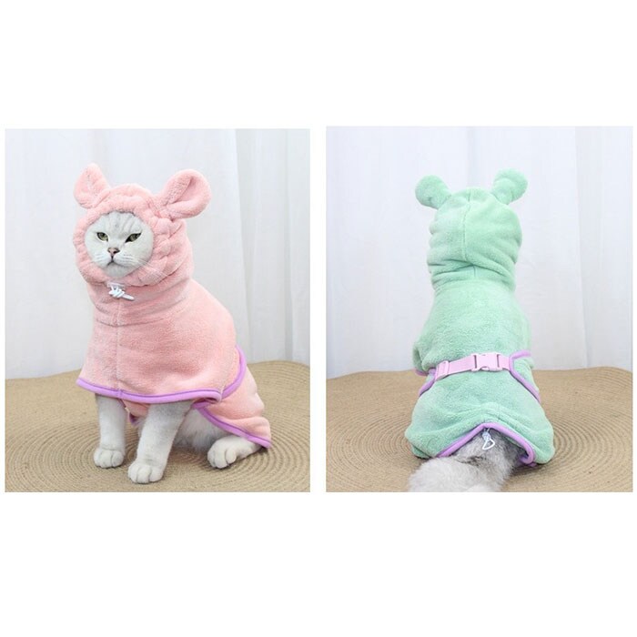 犬用 猫用 ペット バスタオル バスローブ 調整可能【グリーン】【XS】
