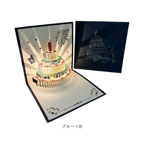 バースデーカード 音が鳴る 光る 誕生日 メッセージカード【ブルー×B】