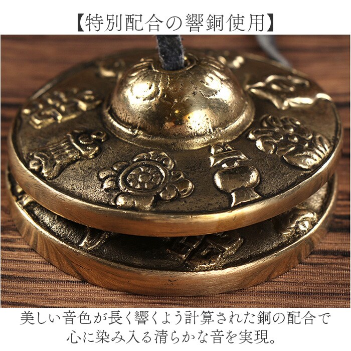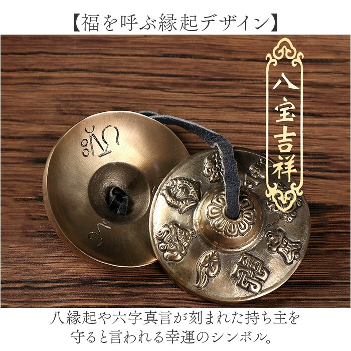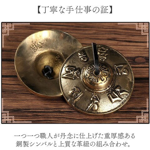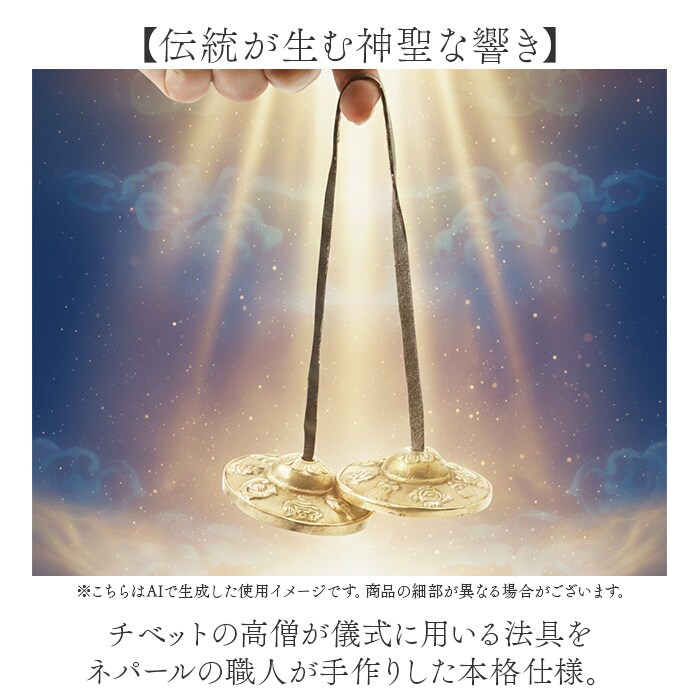 | 商品説明 | 【心を整える聖なる音色】チベット伝統のティンシャで空間に清らかな響きを。【伝統が生む神聖な響き】チベットの高僧が儀式に用いる法具をネパールの職人が手作りした本格仕様。【特別配合の響銅使用】美しい音色が長く響くよう計算された銅の配合で心に染み入る清らかな音を実現。【丁寧な手仕事の証】一つ一つ職人が丹念に仕上げた重厚感ある銅製シンバルと上質な革紐の組み合わせ。【様々なシーンで空間を浄化】ヨガや演奏のアクセント、法具として??鳴らすたびに心が整うヒーリング体験。【福を呼ぶ縁起デザイン】八縁起や六字真言が刻まれた持ち主を守ると言われる幸運のシンボル。 |