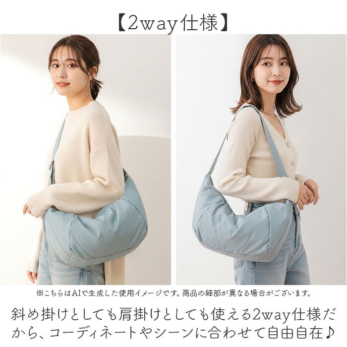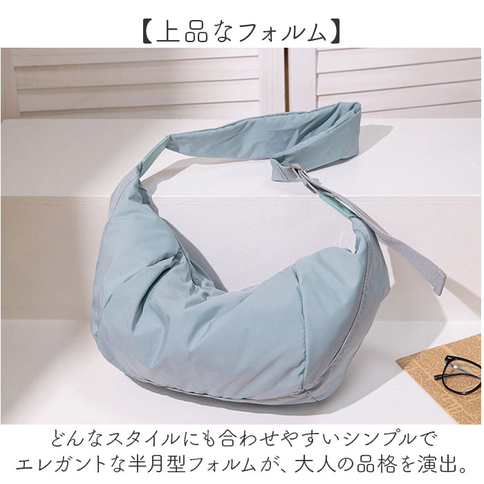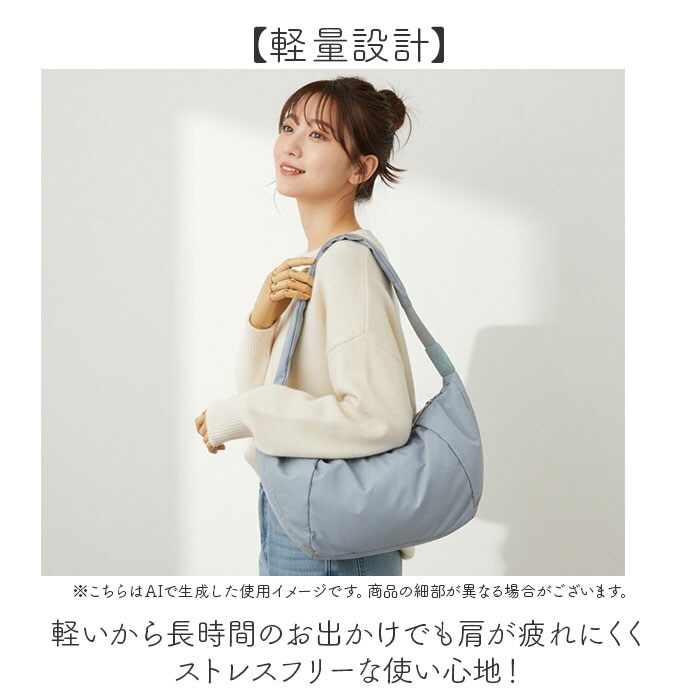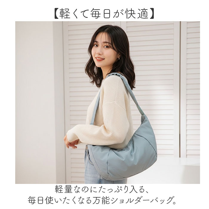 | 商品説明 | 【軽くて毎日が快適】軽量なのにたっぷり入る、毎日使いたくなる万能ショルダーバッグ。【2way仕様】斜め掛けとしても肩掛けとしても使える2way仕様だから、コーディネートやシーンに合わせて自由自在♪【ダブルファスナー】ダブルファスナーだから、荷物の出し入れがとってもラクでスムーズにできる。【軽量設計】軽いから長時間のお出かけでも肩が疲れにくくストレスフリーな使い心地!【太ベルトで安定感】太めのショルダーベルトが荷物の重さを分散してくれるから、たっぷり入れても肩への負担が少ない◎【さらさら質感】ナイロン素材のさらっとした心地よい肌触りで、季節を問わず快適に持ち歩けるのが嬉しいポイント〇【上品なフォルム】どんなスタイルにも合わせやすいシンプルでエレガントな半月型フォルムが、大人の品格を演出。 |