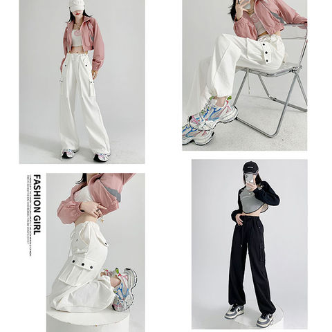 パンツ カーゴパンツ レディース ワイドパンツ ドロスト【ホワイト】【L】
