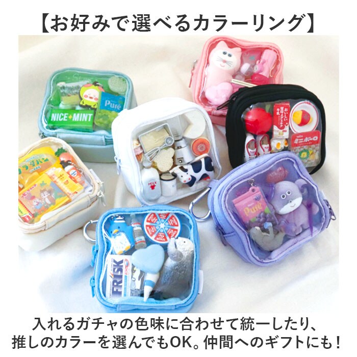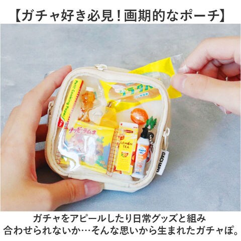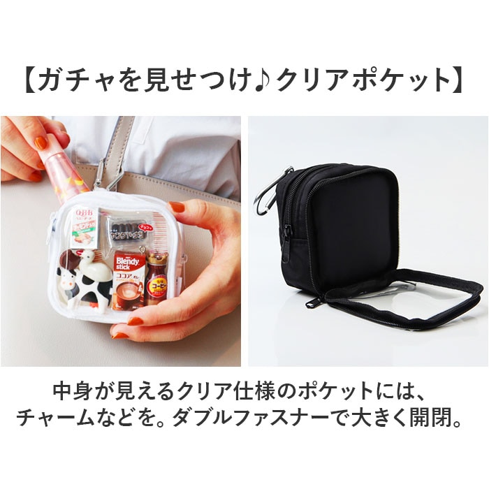 | 商品説明 | 【お気に入りのガチャを持ち歩き♪】小物と一緒にガチャガチャアイテムをIN☆いつも一緒にお出かけできる「GACHA-PO」。【ガチャ好き必見!画期的なポーチ】ガチャをアピールしたり日常グッズと組み合わせられないか…そんな思いから生まれたガチャぽ。【Wのファスナーポケットに仕分け】ファスナーポケットを2つ配置。ガチャと細々した物を分けつつ、1つのポーチにまとまる◎【ガチャを見せつけ♪クリアポケット】中身が見えるクリア仕様のポケットには、チャームなどを。ダブルファスナーで大きく開閉。【コスメやなくしがちな小物を】背面ポケットはリップや目薬など、コンパクトな物の小物入れに。ラウンド型にオープン。【推し活グッズの持ち運びにも☆】推しのグッズを入れてお出かけしたりイベントなどへGO!クリアポケットの使い方は自分次第♪【バッグに簡単取り付けできて便利】バッグのハンドルやDカンなどに装着できる、カラビナ付き。付け外しもスムーズ。【お好みで選べるカラーリング】入れるガチャの色味に合わせて統一したり、推しのカラーを選んでもOK。仲間へのギフトにも! |