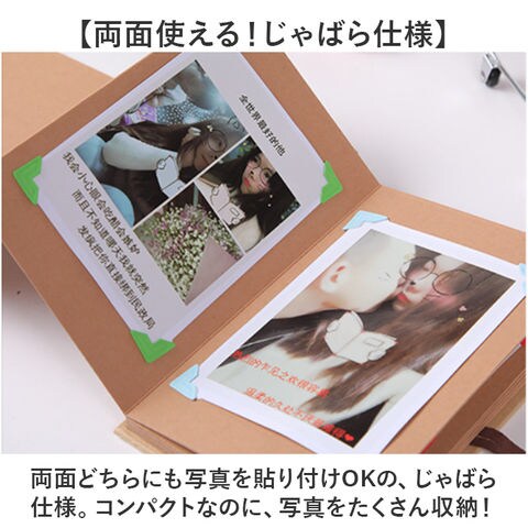 | 商品説明 | 【大切な思い出を可愛く保存♪】自分らしく、自由にデコレーション!「フォトアルバム 折り畳み式」が登場。【両面使える!じゃばら仕様】両面どちらにも写真を貼り付けOKの、じゃばら仕様。コンパクトなのに、写真をたくさん収納!【世界にひとつのアルバムが完成】シンプル無地なので、シールでデコったり、メッセージを書くのもオススメ☆楽しくアレンジ!【手作りのギフトとしてもGOOD】お誕生日や記念日、ウエディングフォトやお子様の成長日記など。大切な方へ贈ってみよう!【推し活にもぴったり!】写真だけでなく、切り抜きなども自由に貼り付けOK。趣味のファイリングや推し活にも◎【専用のカラフルシールが可愛い☆】写真の四隅をとめる、カラフルデコレーションシールを付属。これだけで可愛く仕上がる!※両面合わせて34ページとなります。 |