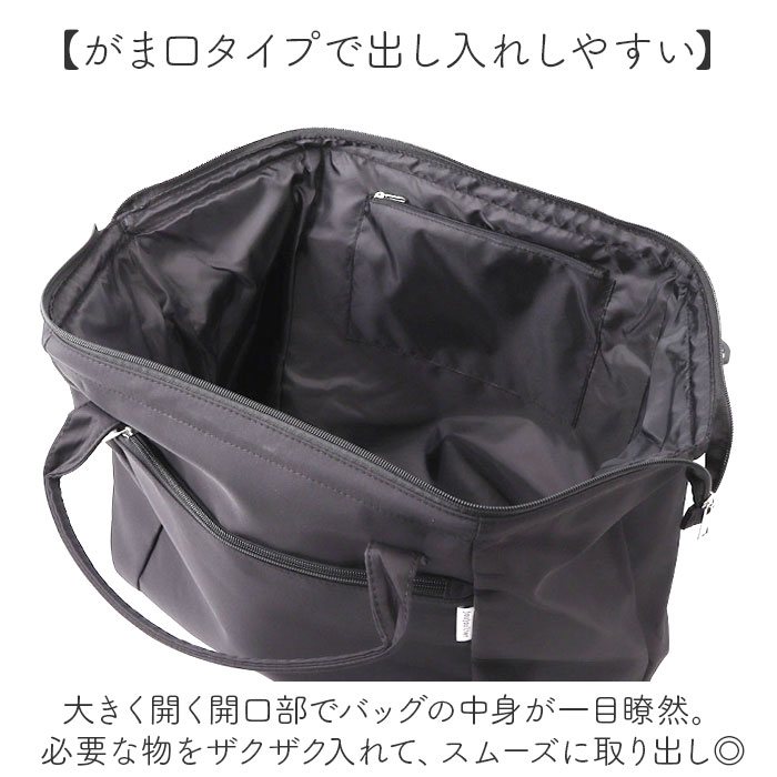| 商品説明 | 【ガバっと開いてザクザク収納♪】荷物の多い日や1泊程度の旅行に!「がま口ボストンバッグ」が登場。【がま口タイプで出し入れしやすい】大きく開く開口部でバッグの中身が一目瞭然。必要な物をザクザク入れて、スムーズに取り出し◎【突然の雨でも慌てないでOK☆】撥水加工を施した生地なので、小雨程度なら大丈夫!汚れにも強い。※完全防水ではありません。【持ち運びがしやすい2WAY】肩掛けと手持ちのお好みの持ち方ができる、ストラップつき。長時間の持ち運びもラクラク。【3つのポケットで整理整頓!】外側と内側にポケットを搭載。ファスナーを開けなくても取り出せる、外ポケットが充実。【嬉しいキャリーオンベルトつき!】スーツケースに取り付けられる、キャリーオンベルトつき!旅行も出張もこれにお任せ☆【ぽわんとシルエットでおしゃれに♪】がま口が魅せる、ぽわんとシルエットでこなれ感をUP☆シンプルだからユニセックスで使える。【ポケット仕様】メイン収納:ファスナーポケット×1背面:ファスナーポケット×1フロント:ファスナーポケット×1 |
