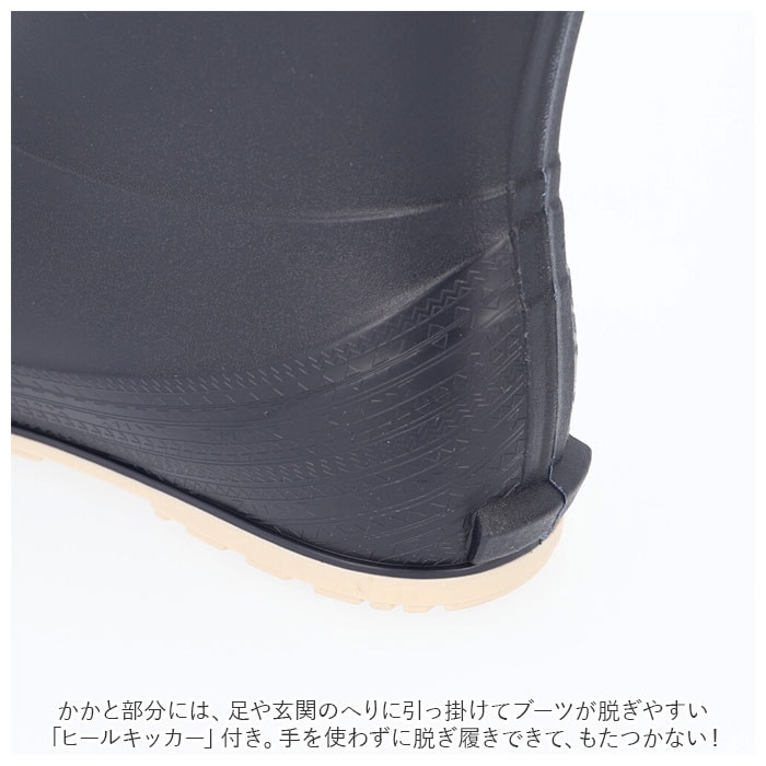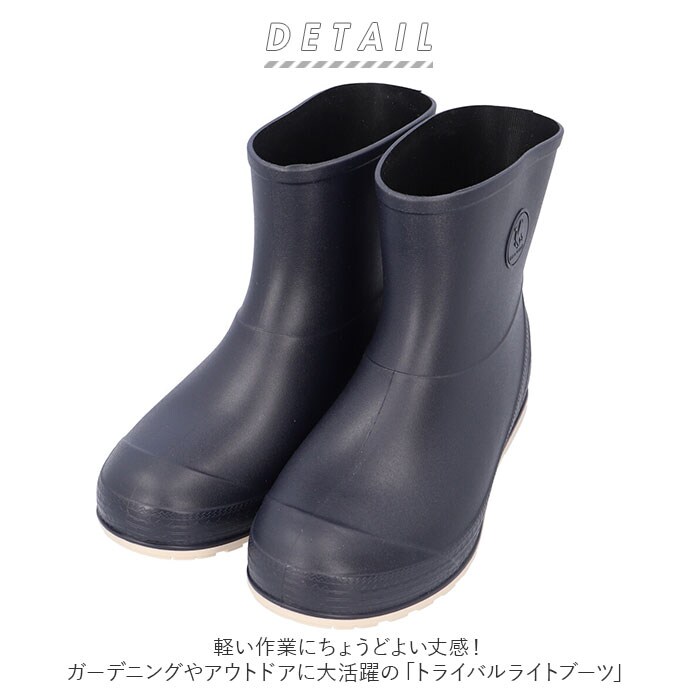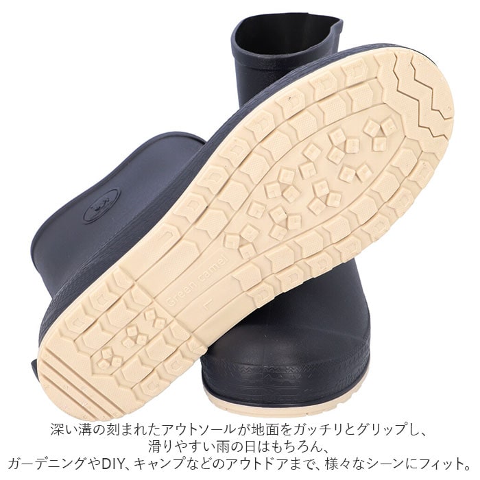 | 商品説明 | 軽い作業にちょうどよい丈感!ガーデニングやアウトドアに大活躍の「トライバルライトブーツ」アッパーとソールは、柔軟性と屈曲性に優れたPVC樹脂素材で一体成型し、水濡れを伴う軽作業にぴったり。長靴ほどは高くなく、スニーカーほど短くない…。絶妙な丈がトライバルライトブーツの最大の特徴。足首回りの動きを妨げないので、作業中のスムーズなアクションを実現。かかと部分には、足や玄関のへりに引っ掛けてブーツが脱ぎやすい「ヒールキッカー」付き。手を使わずに脱ぎ履きできて、もたつかない!スノコのように細かい孔の開いた機能的なインソールは、クッション性と通気性が抜群。取り外して丸洗いができるので、いつでも清潔!深い溝の刻まれたアウトソールが地面をガッチリとグリップし、滑りやすい雨の日はもちろん、ガーデニングやDIY、キャンプなどのアウトドアまで、様々なシーンにフィット。ソールとアッパーの境い目のネイティブ柄のテキスタイルに、「Green camel」のロゴプレートがお洒落なワンポイント! |
