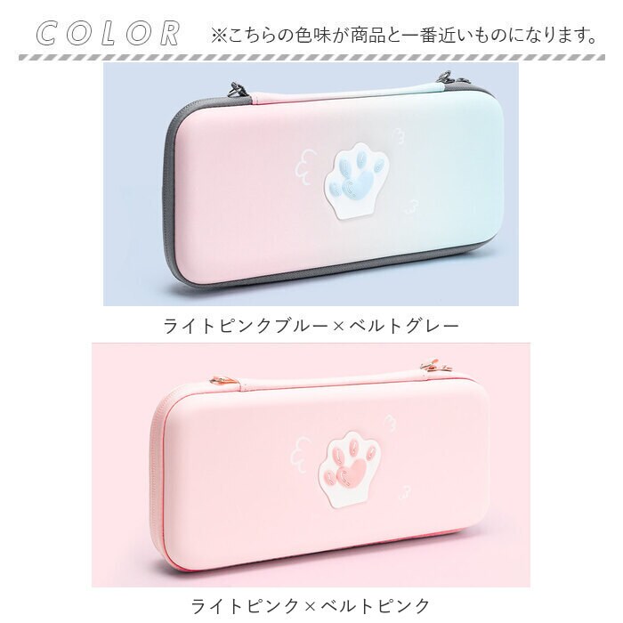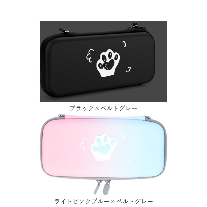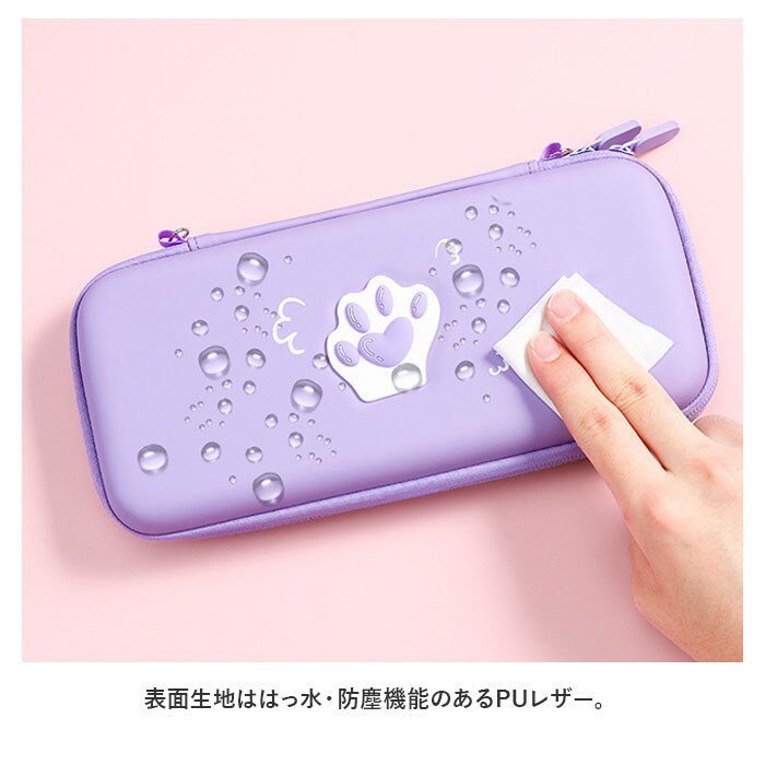 | 商品説明 | Nintendo Switch Lite専用とNintendo Switch専用の収納ケースが登場。収納も持ち運びもケース1つでできるマストアイテム♪エンボス加工された表面の肉球が可愛いトレンドマーク。ゲーム機本体の収納他に、Switchのソフト10個収納できるスロットとモバイルバッテリーやコード類の収納できるメッシュポケット付き。ショルダーベルトと手持ちストラップを付属し、保管だけでなく持ち運びにも便利◎表面生地ははっ水・防塵機能のあるPUレザー。移動中にゲーム機本体が動かないよう固定できる面ファスナーを中に搭載。 |