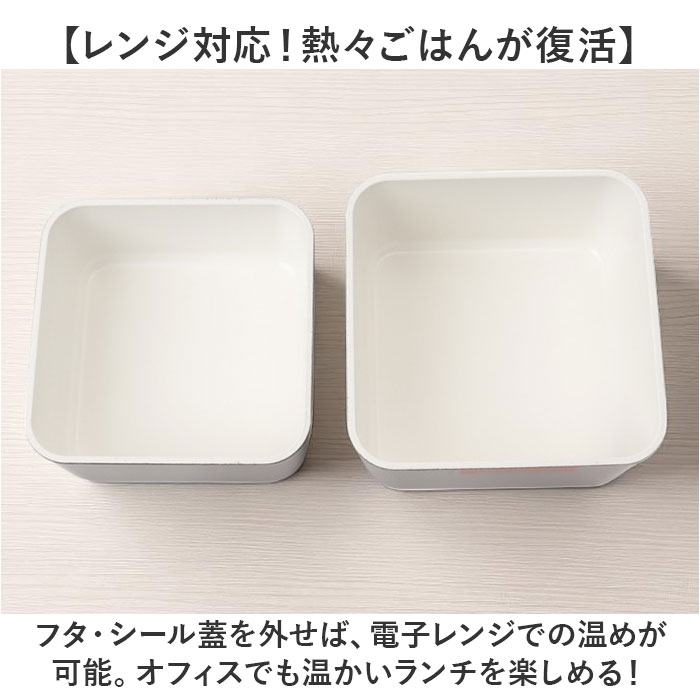 | 商品説明 | 【毎日のランチタイムのお供に】安心の日本製◎デイリーに活躍する「G.D.S スクエアネストランチ 木蓋」。【クールでスタイリッシュな仕上がり】どことなくヴィンテージ感が漂う、シンプルなユニセックスデザインのランチシリーズ。【程よく食材を詰められるスクエア型】すっきり積み重ねた2段ランチボックス。容量は上段360ml、下段240ml。【入れ子式でコンパクトに収納】食べ終わったら、下段が上段に収まる入れ子式。かさばらず、持ち帰りがスマート。【レンジ対応!熱々ごはんが復活】フタ・シール蓋を外せば、電子レンジでの温めが可能。オフィスでも温かいランチを楽しめる!【食洗機が使えてお手入れラクラク】フタ・シール蓋を除いて、食洗機の使用OK。お手入れしやすく、忙しい毎日の味方◎【ホールドして汁漏れガード】ランチボックスをまとめるバンドが付属。シール蓋とセットで汁漏れを防いで、持ち運びも安心。(※)密閉仕様ではありません。【おしゃれなナチュラルデザイン】落ち着きのあるマットなカラーに、木蓋がマッチ。家族色違い揃えや、ギフトにもおすすめ☆ |