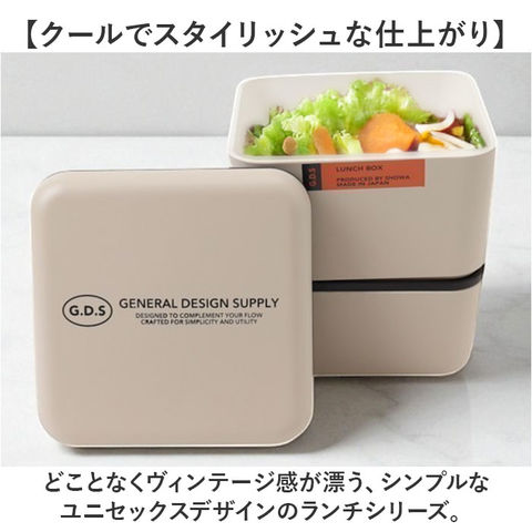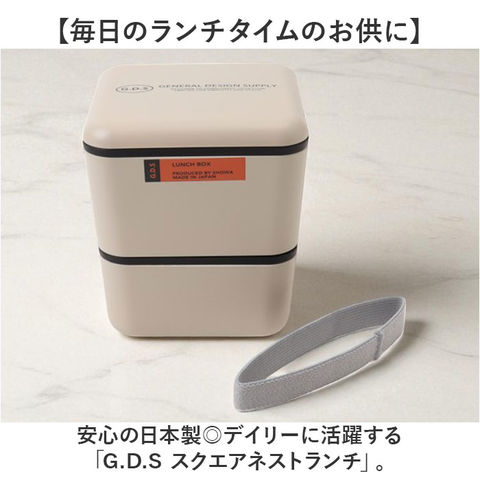 | 商品説明 | 【毎日のランチタイムのお供に】安心の日本製◎デイリーに活躍する「G.D.S スクエアネストランチ」。【クールでスタイリッシュな仕上がり】どことなくヴィンテージ感が漂う、シンプルなユニセックスデザインのランチシリーズ。【程よく食材を詰められるスクエア型】すっきり積み重ねた2段ランチボックス。容量は上段360ml、下段240ml。【入れ子式でコンパクトに収納】食べ終わったら、下段が上段に収まる入れ子式。かさばらず、持ち帰りがスマート。【レンジ対応!熱々ごはんが復活】シール蓋を外せば、電子レンジでの温めが可能。オフィスでも温かいランチを楽しめる!【食洗機が使えてお手入れラクラク】シール蓋を除いて、食洗機の使用OK。お手入れしやすく、忙しい毎日の味方◎【ホールドして汁漏れガード】ランチボックスをまとめるバンドが付属。シール蓋とセットで汁漏れを防いで、持ち運びも安心。(※)密閉仕様ではありません。【お気に入りを選べるカラー】落ち着きのあるマットなカラーをラインナップ。家族色違い揃えや、ギフトにもおすすめ☆ |