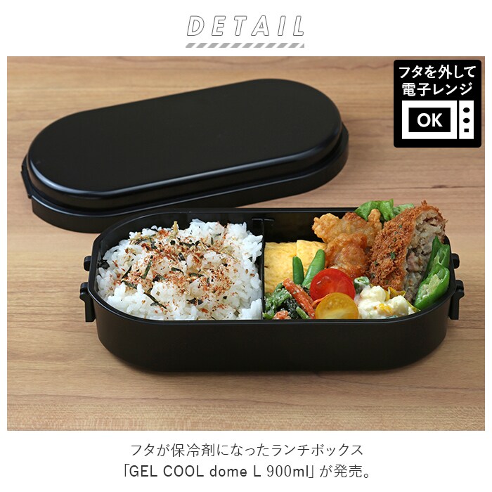 | 商品説明 | フタが保冷剤になったランチボックス「GEL COOL dome L 900ml」が発売。冷凍庫で保冷フタを一晩凍らせて、お弁当をつめたらセットするだけ!夏の暑さや冬の暖房も安心。(※外気温25℃で保冷効果の目安・・・4時間程度)ランチクロスや保冷バッグを併用すると保冷効果さらにUP♪容量は900mlと大容量なので、男性や中高生のお子さまのランチにちょうどいいサイズ感。両サイドの留め具とパッキンで、汁漏れが気になりにくいのもポイント。小判型なので、食べやすく、洗いやすいのも嬉しい♪フタを外せば電子レンジや食洗機の使用もOK!ふわっと盛り付けができるドーム型のフタタイプ。シンプルな形と落ち着いたカラー。毎日のランチタイムにぴったり。 |