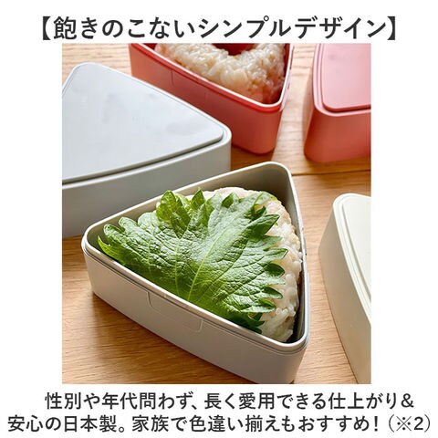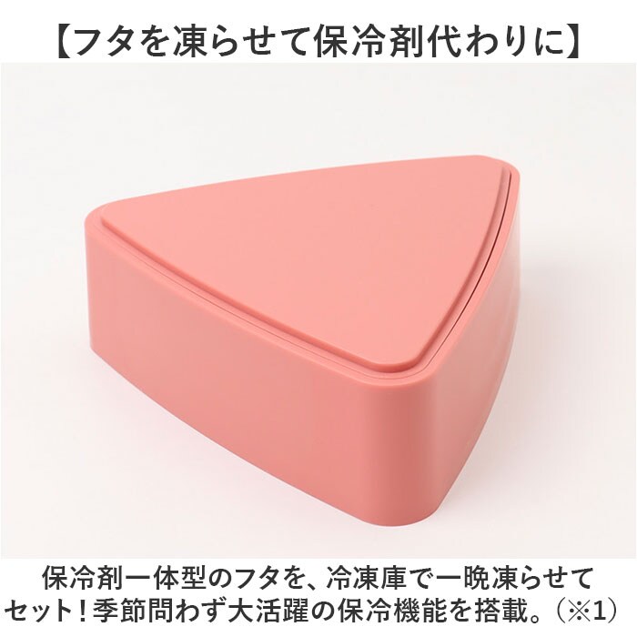 | 商品説明 | 【暑い季節も冬の暖房も保冷で安心】嬉しい保冷機能付き☆「GEL COOL triangle おにぎりケース 180ml」。【フタを凍らせて保冷剤代わりに】保冷剤一体型のフタを、冷凍庫で一晩凍らせてセット!季節問わず大活躍の保冷機能を搭載。(※1)保冷効果の目安:冷蔵庫で冷やした食材(5度)を入れた場合、外気温25度で4時間程度、食材を15度以下に保ちます。保冷バッグを併用することで、保冷効果をより長く保つことができます。【いつでもワンタッチで簡単開閉】留め具などがなく、サッと開けてカチッと鳴るまで閉じるだけ。ストレスフリーな使用感。【コンビニおにぎり1個分サイズ】コンビニおにぎりがちょうど1個収まる大きさ。大人も子供も家族みんなで使用OK。【カタチをキープするハードケース】固さのあるケースが、衝撃から守る!バッグの中でも、おにぎりが潰れる心配不要♪【環境に配慮◎安心のBPAフリー】化学物質BPA不使用!健康や環境へのリスクを避けることができ、小さなお子さまにも最適。【飽きのこないシンプルデザイン】性別や年代問わず、長く愛用できる仕上がり&安心の日本製。家族で色違い揃えもおすすめ!(※2)当店別ページで販売中のGEL COOL FIT トライアングル保冷ケース(商品コード:gelcoolonigiric)に入る大きさです。 |
